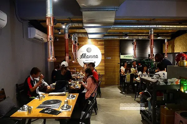 要說韓國烤肉為什麼迷人,我想特色就在於烤肉是爽爽吃,都是店員桌邊服務幫你烤得好好,不用擔心自己烤工太差,會吃到臭火乾的肉,輕輕鬆鬆地一口酒一口肉,三五好友一起聊聊天,聞著烤肉散發的香氣,看著粉紅色的肉烤熟後滲出甘甜的肉汁,再加上滋滋作響的聲音!視覺、嗅覺和聽覺,都在慫恿著口腔分泌唾液,在MANNA 만나 韓式烤肉專門店,除了品質好的肉品,還有美麗的老闆娘桌邊服務,大夥一起喝點小酒,氣氛熱鬧,店家的裝潢又很時尚,難怪這家店才開幕沒多久,就已經很難訂位了!