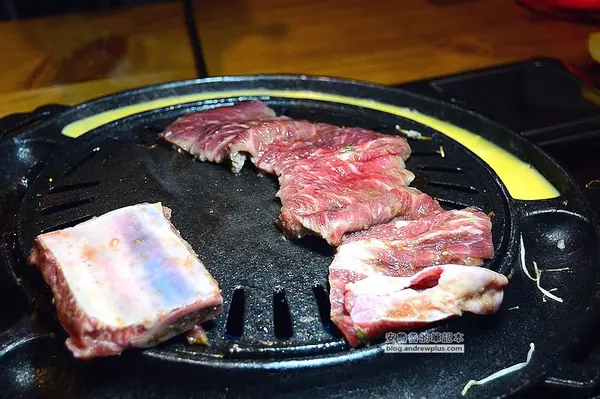 ▼韓式帶骨牛小排是醃製調味過的牛肉,吃起來肉質較為扎實,享受牛肉的香甜在咀嚼的過程慢慢在嘴裡擴散