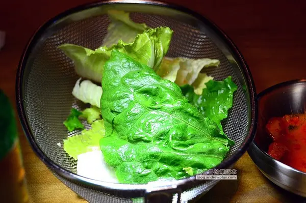 ▼雖然老闆娘說,他們韓國人吃肉其實比較常配著泡菜吃,比較少包生菜,但是既然都已經送上桌了,當然也要包來吃啊!