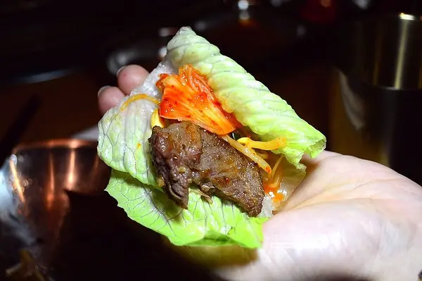 ▼美麗的老闆娘幫我們烤得如此令人流口水的好肉,就要趁熱趕快吃,牛小排油脂比較豐富,搭配泡菜可以解膩!香辣又有牛肉的香甜味