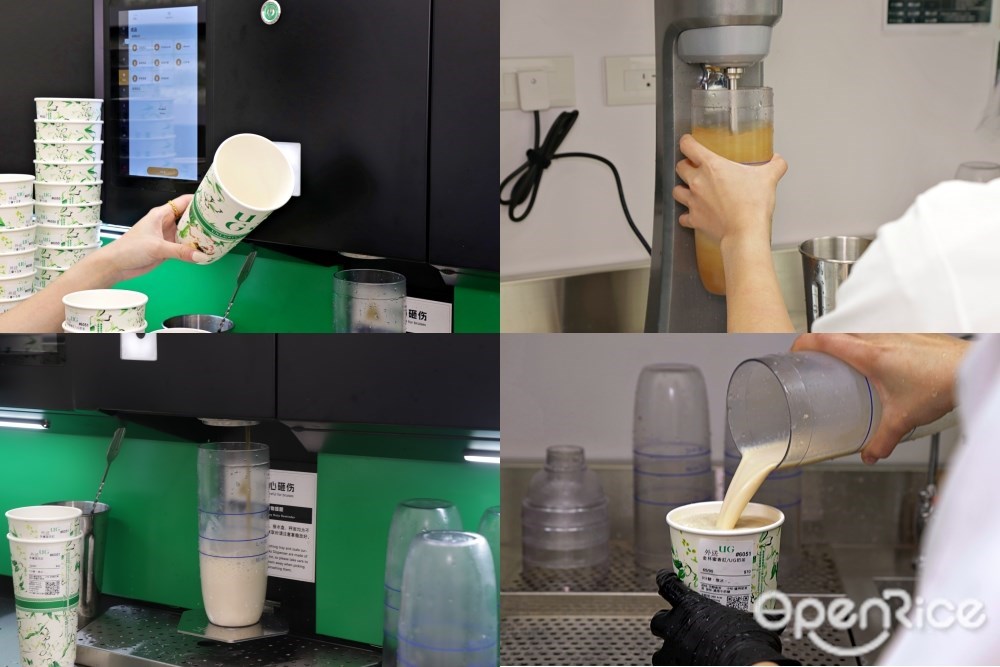 UG製茶過程採用科技化的機台輔助,只要掃瞄杯身QR碼,電腦即會自動杯中注入客人下單的飲品。