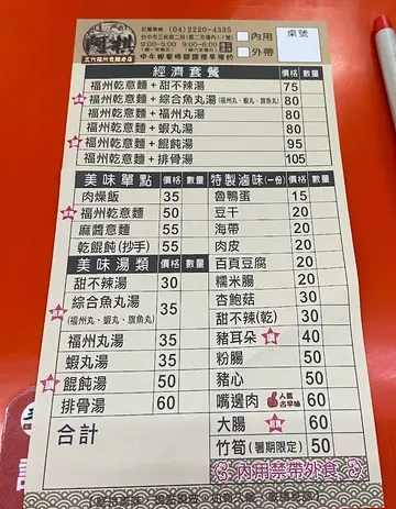 台中第二市場美食推薦這家三代福州意麵,台中第二市場排隊店真的很多,幾乎每一家都要排,要說到排隊最滿的除了門口處的王家菜頭粿糯米腸外,再來就是這家三代福州意麵,基本上也是排到一個不行,畢竟也是80年老店,不少人都是從小吃到大,實力還是非常強大,雖然大多數的台中人都不太吃XD三代福州意麵|交通方式、停車資訊三代福州意麵就在台中第二市場內,從老賴紅茶旁邊的巷子進來就可以看到了,假日基本上都是滿滿的人,好在店家的引導人員訓練有素,排隊不會亂糟糟,內用要排隊,外帶則是不需要,直接到櫃台點就可以了,這附近出了名的難停車,多繞一下找停車格或停車場吧三代福州意麵在第二市場有兩個店面,一個是廚房區,另一個則是內用區,外面的走廊也都是內用區,桌上都有桌號,點餐時記得一定要填桌號,不然人多很容易不小心沒做到你的,目前是由第五代接手,在料理區『鶴立雞群』的那個應該是老闆,已經上過不少媒體了,加上身高很容易認XD旁邊的牆上貼滿的各種媒體的報導內用排隊區規劃在巷子尾端,先排隊拿菜單劃,等服務人員帶位,排隊分流也不會讓店前都是人三代福州意麵|菜單主打的當然是店家自製的手工意麵,另外綜合丸子湯也是不少人會點的,可以點套餐比較划算,滷味的價格還算親民,種類也多,另外三代福州意麵還有生麵、肉燥、丸子之類的自製商品可以買回家自己煮三代福州意麵|乾意麵&麻醬意麵福州乾意麵有兩種:乾意麵&麻醬意麵,兩種都吃看看有什麼差別,另外點了小菜跟綜合丸湯,點這麼多大概才300元左右,不貴桌上有台中名產東泉辣椒跟三代辣椒粉乾意麵,就是傳統的肉燥口味,他們家的乾意麵算是有彈性的那種,而且沒有鹼味,單麵體合格,肉燥還不錯,醬香肉燥香氣都很到位,還可以吃到碎肉的口感,加上QQ的意麵,蠻厲害的,加點三代辣椒粉更好吃麻醬意麵,除了肉燥外還多了股麻醬的香氣,因為加了麻醬,意麵吃起來更濕潤順口,老實說,麻醬意麵比乾意麵好吃很多抄手,就是乾餛鈍,可以不用點,其實還蠻普通的,單吃就是灑了胡椒清爽版的餛飩,反正在台中覺得沒味道的通通加東泉辣椒醬都可以救的回來,神救援無敵醬料綜合魚丸湯,大骨湯底很清甜,丸子則有包餡的福州魚丸、旗魚丸跟蝦丸,丸子表現也很不錯老實說吃完三代福州意麵沒有特別的印象,硬要說大概是人非常多跟老闆很高吧,如果平日不用排隊有經過應該加減吃,如果要再排一次,我應該會選去第二市場外圍轉角處的意麵吧!…查看更多