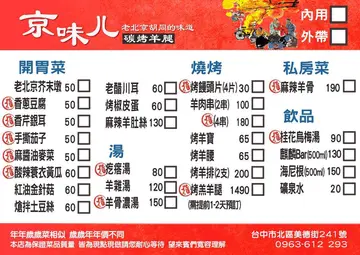 中國醫藥大學美食推薦,這間來自老北京的道地美味,主打紐西蘭小羔羊腿,讓糖糖一吃就難以忘懷,至今已N訪多次的京味兒,除了招牌碳烤小羔羊腿外,還有許多老闆的拿手菜也另糖糖讚不絕口,像是熗拌土豆絲、麻醬油麥菜都是糖糖來必點,還有那讓人吮回味的烤羊肉串及烤羊排也超激推~京味兒位於美德街上,靠近尚德街這邊,營業時間只有晚上,週二公休,話說糖糖每次都是禮拜二特別想吃他們家,所以禮拜二心情最低落,因為都吃不著外觀非常居家,沒有華麗的裝潢,也沒有漂亮的擺飾,看起來相當不起眼,裡面藏著的美味可是會另你驚艷不已唷京味兒的內用座位只有一層樓,空間還蠻寬敞的,桌子間的距離不會太近,每個座位的頭上幾乎都有一台抽油煙機,如果有點碳烤羊腿會使用到~來來來~就上京味兒的Menu給大家參考,主要以碳烤羊料理為主,還有許多老闆拿手菜及私房菜,之前還有提供麵食,不過現在已經拿掉了碳烤羔羊腿的部份需提前1-2天訂購,如果現場來直接點是吃不到滴~如果不知道開味菜是什麼,櫃檯前方有圖片可以參考,有問題都可以直接詢問老闆,老闆會一一為大家做介紹唷~熗拌土豆絲 60元首先要來介紹糖糖的最最最最愛,每次來都是兩盤以上的熗拌土豆絲,土豆絲其實就是馬鈴薯,將馬鈴薯切成絲狀後,放入冷水中靜置片刻來去掉表面的澱粉質,接著瀝乾後汆制,最後一個步驟就是放涼調味口感清脆的土豆絲,因切面大小不同,吃起來相當多層次,搭配特調醬汁,微酸微辣的滋味,清爽又開胃,糖糖吃了一口就上癮啦 麻醬油麥菜 50元這個油麥菜就是台灣俗稱的「A菜」,沒有煮過也沒有炒過,直接生菜淋上店家特製的蒜香麻醬,以涼拌的方式,糖糖覺得這樣吃法比炒過的A菜更好吃,少了苦味,口感更加清脆糖糖還蠻喜歡他們家的特製蒜香麻醬,吃起來偏小辣,帶著迷人的芝麻香氣,感覺搭配其他食材也很讚疙瘩湯 80元這到疙瘩湯也是糖糖每次來必點的餐點,雖然歸類在湯類,但糖糖覺得他比較偏主食類,因為這碗喝下去高級有飽足感裡頭的麵疙瘩別於一般市面上看到的那麼大塊,這裡的麵疙瘩超迷你,煮得相當透徹,吃起來不會有麵粉味,以番茄蛋花湯為基底,口感超特別,帶點黏稠感,每一口都吃的到番茄的酸甜滋味,有夠讚烤羊肉串 4串180元一次就給他點個4串來吃才爽快,而且4串的價格還比2串優惠唷,羊肉串都是現點現烤,上桌時還在滋滋作響,那撲鼻而來的孜然香更是迷人阿肉質軟嫩不柴,帶點些許嚼勁,羊肉香氣十足,會讓人越嚼越香,越吃越帶勁~烤羊排 2支200元覺得剛剛的羊肉串吃的不過癮,來來來,一整支的烤羊排讓你爽爽啃上頭一樣灑上滿滿孜然增添香氣,大口咬下去,油花及羊兒的香氣立刻在嘴裡爆香來,真的有夠香,吃起來會比剛剛的羊肉串還要再有嚼勁些唷烤羔羊腿 1490元最後重頭戲!要預約才吃的到的碳烤小羔羊,選用紐西蘭6個月大的小羔羊,經過醃製後再灑上孜然、茴香及胡椒粉調味,糖糖之前來是使用後腿肉,看起來比較大塊,肉也比較多,現在已經更改使用羊前腿肉,size比較小一點,不過肉質更軟嫩~羊腿上桌時老闆會先教大家怎麼吃,邊切邊吃是最好,如果一次切太多容易涼掉,放在烤網上太久又容易老掉,肉質就會變得乾乾的將羊肉切下來放再烤網上約30秒就可以享用囉因為羊腿有調味過了,糖糖覺得單吃就很夠味,如果覺得不夠旁邊也有孜然粉可以做添加唷~糖糖覺得前腿肉真的比之前的後腿肉還要軟嫩,羊肉香氣非常迷人,裡頭帶點微微的筋,吃起來很Q軟,不會像橡皮筋那樣怎麼嚼都嚼不爛~吃到後面店家還會幫忙把羊腿分屍(咦~這樣講起來怎麼有點怪怪的,直接把骨頭拿起來啃食才爽快~最精華就在這裡了,色香味俱全,令人食指大動的美味不管是開胃菜還是碳烤小羔羊,道道都深得糖糖心,想要吃道地北京菜及美味的碳烤羊肉料理,糖糖大力推薦這間京味兒給大家,讓你一試成主顧,記得羊腿要提前一、兩天預訂唷~…查看更多
