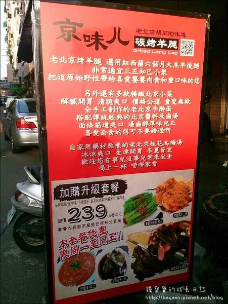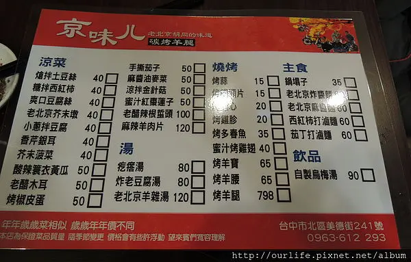 中國醫藥大學美食推薦,這間來自老北京的道地美味,主打紐西蘭小羔羊腿,讓糖糖一吃就難以忘懷,至今已N訪多次的京味兒,除了招牌碳烤小羔羊腿外,還有許多老闆的拿手菜也另糖糖讚不絕口,像是熗拌土豆絲、麻醬油麥菜都是糖糖來必點,還有那讓人吮回味的烤羊肉串及烤羊排也超激推~京味兒位於美德街上,靠近尚德街這邊,營業時間只有晚上,週二公休,話說糖糖每次都是禮拜二特別想吃他們家,所以禮拜二心情最低落,因為都吃不著外觀非常居家,沒有華麗的裝潢,也沒有漂亮的擺飾,看起來相當不起眼,裡面藏著的美味可是會另你驚艷不已唷京味兒的內用座位只有一層樓,空間還蠻寬敞的,桌子間的距離不會太近,每個座位的頭上幾乎都有一台抽油煙機,如果有點碳烤羊腿會使用到~來來來~就上京味兒的Menu給大家參考,主要以碳烤羊料理為主,還有許多老闆拿手菜及私房菜,之前還有提供麵食,不過現在已經拿掉了碳烤羔羊腿的部份需提前1-2天訂購,如果現場來直接點是吃不到滴~如果不知道開味菜是什麼,櫃檯前方有圖片可以參考,有問題都可以直接詢問老闆,老闆會一一為大家做介紹唷~熗拌土豆絲 60元首先要來介紹糖糖的最最最最愛,每次來都是兩盤以上的熗拌土豆絲,土豆絲其實就是馬鈴薯,將馬鈴薯切成絲狀後,放入冷水中靜置片刻來去掉表面的澱粉質,接著瀝乾後汆制,最後一個步驟就是放涼調味口感清脆的土豆絲,因切面大小不同,吃起來相當多層次,搭配特調醬汁,微酸微辣的滋味,清爽又開胃,糖糖吃了一口就上癮啦 麻醬油麥菜 50元這個油麥菜就是台灣俗稱的「A菜」,沒有煮過也沒有炒過,直接生菜淋上店家特製的蒜香麻醬,以涼拌的方式,糖糖覺得這樣吃法比炒過的A菜更好吃,少了苦味,口感更加清脆糖糖還蠻喜歡他們家的特製蒜香麻醬,吃起來偏小辣,帶著迷人的芝麻香氣,感覺搭配其他食材也很讚疙瘩湯 80元這到疙瘩湯也是糖糖每次來必點的餐點,雖然歸類在湯類,但糖糖覺得他比較偏主食類,因為這碗喝下去高級有飽足感裡頭的麵疙瘩別於一般市面上看到的那麼大塊,這裡的麵疙瘩超迷你,煮得相當透徹,吃起來不會有麵粉味,以番茄蛋花湯為基底,口感超特別,帶點黏稠感,每一口都吃的到番茄的酸甜滋味,有夠讚烤羊肉串 4串180元一次就給他點個4串來吃才爽快,而且4串的價格還比2串優惠唷,羊肉串都是現點現烤,上桌時還在滋滋作響,那撲鼻而來的孜然香更是迷人阿肉質軟嫩不柴,帶點些許嚼勁,羊肉香氣十足,會讓人越嚼越香,越吃越帶勁~烤羊排 2支200元覺得剛剛的羊肉串吃的不過癮,來來來,一整支的烤羊排讓你爽爽啃上頭一樣灑上滿滿孜然增添香氣,大口咬下去,油花及羊兒的香氣立刻在嘴裡爆香來,真的有夠香,吃起來會比剛剛的羊肉串還要再有嚼勁些唷烤羔羊腿 1490元最後重頭戲!要預約才吃的到的碳烤小羔羊,選用紐西蘭6個月大的小羔羊,經過醃製後再灑上孜然、茴香及胡椒粉調味,糖糖之前來是使用後腿肉,看起來比較大塊,肉也比較多,現在已經更改使用羊前腿肉,size比較小一點,不過肉質更軟嫩~羊腿上桌時老闆會先教大家怎麼吃,邊切邊吃是最好,如果一次切太多容易涼掉,放在烤網上太久又容易老掉,肉質就會變得乾乾的將羊肉切下來放再烤網上約30秒就可以享用囉因為羊腿有調味過了,糖糖覺得單吃就很夠味,如果覺得不夠旁邊也有孜然粉可以做添加唷~糖糖覺得前腿肉真的比之前的後腿肉還要軟嫩,羊肉香氣非常迷人,裡頭帶點微微的筋,吃起來很Q軟,不會像橡皮筋那樣怎麼嚼都嚼不爛~吃到後面店家還會幫忙把羊腿分屍(咦~這樣講起來怎麼有點怪怪的,直接把骨頭拿起來啃食才爽快~最精華就在這裡了,色香味俱全,令人食指大動的美味不管是開胃菜還是碳烤小羔羊,道道都深得糖糖心,想要吃道地北京菜及美味的碳烤羊肉料理,糖糖大力推薦這間京味兒給大家,讓你一試成主顧,記得羊腿要提前一、兩天預訂唷~…查看更多