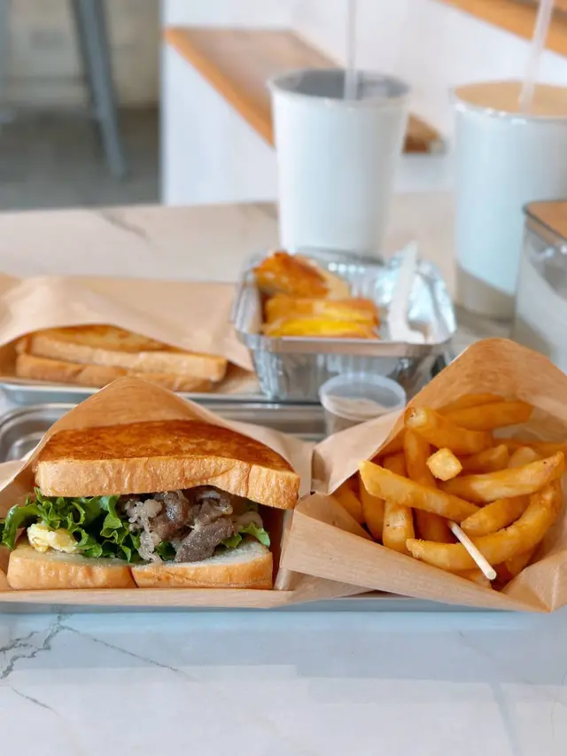 是的,我又去台中了😂~周六早上坐飛機到台中,到酒店寄存行李後還能吃到早餐超級幸福😚!酒店走過來大概10~15min,剛好去到有位置所以選擇內用,但之後店內人潮不斷,外帶內用都蠻多人🔅脆糖牛五花+松露薯條 (NT$139)看評論蠻多人推脆糖吐司所以點了一份,只有上面那層吐司有脆糖,吐司偏甜,配上中間的牛五花又鹹鹹的,所以吃起來味道又鹹又甜,個人不太愛😂。另外建議牛五花可以放平均點,吃到中間已經沒了😂。不過薯條🍟很香脆,份量也蠻多🔅起司乳酪烤餅+金沙巧克力 (NT$119)烤餅微脆,配上鹹香的起司挺不錯。金沙巧克力中間有榛果碎增加口感很好吃🔅豆漿🔅紅茶微甜,挺大杯💬脆糖吐司口感蠻特別,如果愛鹹鹹甜甜的朋友們應該很愛!…查看更多