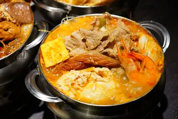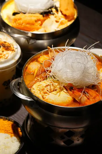 好一陣子沒來這裡吃火鍋,竟然變的這麼大間又這麼漂亮,不說我還以為是高級的日料店呢!!現在台中的餐廳都越開越有看頭台中老字號的火鍋店,我最愛的起司奶鍋創始店,應該是很多人從小吃到大的回憶 雖然常在這附近走來走去,但我還真的是沒印象這幾間店面的前生是賣啥的,突然有一天就變成偈亭,很不一樣的偈亭,看起來有三個店面一樣大,外觀也時尚許多,走的就是台中火鍋店很愛的大器風格,店門口設置了更多的等候區,加上前面原本雙十一店的老店面,在假日時依舊是客滿,生意好的讓人羨慕,不愧是20幾年的實力派老店空間更寬大更舒服,突然想起原始店還真的很小一間,連走路的空間都不太有,而且是一個挨著一個坐,現在的環境跟以前的相比簡直是五星級,如果要請客也覺得用餐環境超體面的 火鍋的口味也變得更多種類,像我喜歡的起司奶鍋就多了辣味起司奶鍋、蕃茄起司奶鍋、南瓜起司奶鍋、青醬蔬食起司奶鍋,看我多久沒來了 飲料也有了更多的選擇, 從最初的飲料攤,轉型小火鍋店,所以飲料的口味不會太差,也是水準之上沙茶、辣椒醬油等的調味醬料,但其實我覺得他火鍋本身的調味就很足夠,如果你比較重口味也可以自行取用,不過他們家的沙茶醬是帶點甜味的,很對我這個台南人的胃口,我都會拿他們家的沙茶醬配魚鬆飯吃出餐速度一直都很快,總是能馬上滿足我們飢腸轆轆的胃,每鍋都會附有放了魚鬆的白飯和冬粉,放了酥脆魚鬆的白飯也是他們家最大的特色,只有他們家獨有,年輕時自己都能嗑上一整碗,現在不敢吃太多白飯了,吃一兩口解解饞就好我最愛的起司奶鍋,這次看到有辣味的起司奶雞肉鍋便點來試試看新口味 份量大也是他們家的特色,給的誠意十足滿滿的蔬菜、火鍋料、油條等等,小鳥胃的女生兩個人共鍋一份就很足夠,因為又有飯又有冬粉相當飽足,用牛奶當鍋底香濃四溢,店內最經典的招牌菜色 當然也少不了起司,融化的起司拌上奶香十足的牛奶鍋底,還有微微的辣度,越煮越香濃夠味,聽說最好吃的吃法就是點一鍋泡菜鍋再點一鍋起司奶鍋,兩鍋湯頭混搭驚喜加倍 麻辣腸旺臭臭鍋,不是那種很臭很臭的那種臭臭鍋,算臭的溫和順口,那種很臭的我無法 豆腐、鴨血、大腸也很彭湃的滿到要溢出來了 又辣又香的麻辣湯頭,非常入味的鴨血和豆腐,浸潤在麻辣湯裡的冬粉好好吃唷!!新品泰式酸辣豬肉鍋也很讓人驚喜很有異國風味的泰式海鮮酸辣湯tom yum kung無誤,有著檸檬等香料的清香,湯頭酸中帶辣很爽口 多了蝦子、魷魚等等的海鮮料,後來看到竟然還有加了起司的泰式酸辣鍋,光想就覺得美味,下次來要點來試試 看到有冰沙類的飲品就是很難逃冰沙的誘惑,吃熱熱的火鍋一定要配一杯冰冰涼涼的飲品啊!!個人很推薦宇治抹茶拿鐵冰沙和黑豆玄米抹茶冰沙,黑豆玄米抹茶冰沙甜度會比較沒那麼甜,還有很香的黑豆玄米香氣,上頭的奶蓋清爽不膩,蠻好喝的防疫時期無法和家人朋友們去吃共鍋火鍋的好選擇,一人一鍋衛生乾淨剛剛好,鍋物種類多樣,環境又漂亮,適合家聚的好地方…查看更多