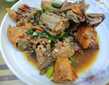在一次到【富狀元】用餐大啃豬腳時,旁邊有一大家子高聲談論附近的美食好多都是沒聽過的小店,太太說住台中六年多,該吃的應該都吃過了既然是在地人,我當然要更豎起耳朵聽他們在說什麼說著說著說到烤鴨,聽到喜歡吃的整個人興奮極了而且就在【富狀元】附近,趕緊上網查詢不少網友說營業時間參考用,賣完會提早打烊馬上一邊打電話請老闆預留,一邊把桌上的東西胡亂扒進嘴裡北平烤鴨就在【富狀元】斜對面,車來人往的馬路口,紅底白色非常好找雖然沒有想像中的大排長龍,但是來購買的客人沒有間斷也有客人跟老闆天南地北的聊著天,看來是買到變朋友了老闆經驗豐富,我預定時間到的時候,剛好我的烤鴨就準備好了因為已經吃飽所以買半隻(250元),有附餅皮、甜醬和蔥段餅皮有點厚度,仔細咀嚼可以感受到麵皮的彈性與麵粉甘甜香鴨肉在燈光照射下閃閃發亮,香氣從袋中拿出來的同時撲鼻而來我很怕鴨皮有軟爛的口感,這個完全不會雖然不到脆口的程度,但是有達到薄而酥香的口感鴨肉在每一次的咀嚼中都會跑出肉汁,沒有鴨腥味也不會柴將鴨肉和鴨皮夾進餅皮中,一口可以吃到不同層次的美味鴨架用蔥、蒜快炒,是偏辣的口感,但不會嗆口我比較喜歡用九層塔爆香的處理方式,但是每一塊鴨骨都可以啃到不少鴨肉所以我連骨頭裡的湯汁也認真吸吮不放過《呷飽資訊》北平烤鴨 土窯雞地址:台中市西區美村路一段214號電話:(04)2302-2202時間:10:00-17:00(烤鴨賣完即打烊)查看更多