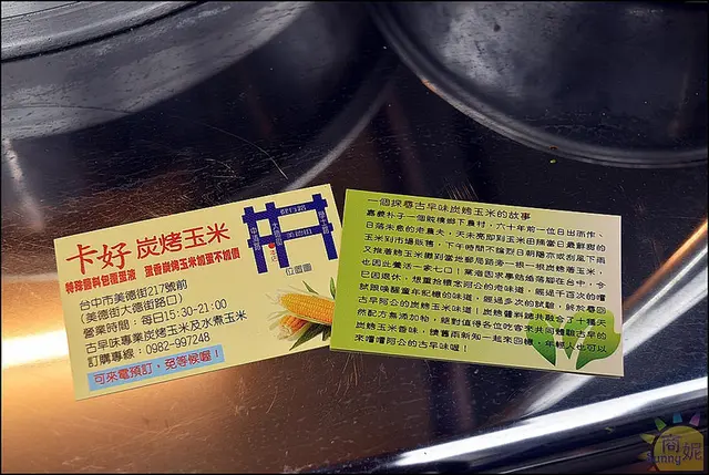 商妮今天要分享一家6月新開好吃的烤玉米小攤~卡好炭烤玉米他們家的烤玉米跟別家比較不一樣的是選用十種中藥香料刷醬,還有免費加蛋,烤過後味道更香烤玉米小攤位在中國醫附設醫院正後方,美德街與大德街口小小攤車只賣兩種玉米~水煮跟炭烤炭烤玉米一支50元/水煮玉米一支25元(5支100元)老闆說七月底前打卡按讚不管買幾支都是一支20元店家名片背面有介紹老闆從小就跟著阿公賣玉米,退休後很懷念阿公的古早味,於是自己來賣憑著記憶中的美味印象,經過無數次嘗試,終於找回小時候阿公的古早味炭烤玉米味道對很多五六年級的朋友來說,這種小時候的味道,一吃就會愛上它一般的烤玉米店醬汁口味非常多樣,卡好就是跟別人不一樣老闆說它就是要賣阿公的味道,堅持只用4種醬汁十種天然中藥配方調製出的特製刷醬、台中人最愛的東泉辣椒醬、義美水煮純豬油、新鮮蛋黃老闆看到商妮要拍照還特地拿出純豬油罐子,說這種味道烤過更香玉米的大小尺寸都差不多,別家有分大小支定價,他們家通通一樣的價位老闆說他們的玉米是台南糯米玉米,口感比較Q在現場等的時間,看老闆不斷的幫玉米刷上中藥特製醬受熱後被玉米吸收進去,一層一層疊上去,光是看就覺得很好吃喜歡吃辣的,再刷上東泉辣椒醬這種特殊的風味,台中人最喜歡加在炒麵裡頭,那滋味真是好吃卡好把東泉辣椒醬刷在烤玉米上面,味道也很搭最後塗上豬油、蛋黃,在炭火上面燒烤味道好香啊~~來來來~~看一下烤好的玉米表面有了蛋黃包覆,所有醬汁都鎖在裡面連底部都有刷到,每一顆玉米都有吃到醬汁而且不會烤到烏漆媽黑,看起來比較舒服糯米玉米的口感比較Q,帶有咬勁特調醬汁吃起來有沙茶味,還有胡椒香,味道甜鹹還有炭烤香氣不是重鹹重辣那種重口味,吃起來比較清爽,最棒的是外層的蛋香好好吃古早味炭烤玉米商妮跟老公都喜歡,一支份量不算少吃完會飽耶,這樣50元真是蠻划算的看到別人買水煮玉米,先拍張照片,商妮也想買,結果老闆說這是最後三根被買走了登愣!!??賣完了。。。不甘心沒買到,隔天請老公下班去外帶回家4支大小都差不多,體格也很大支一支25元/5支100元,打卡通通一支20元水煮玉米一樣QQ有彈性,刷了鹽水吃起來更有甜味,好吃不過商妮還是比較喜歡炭烤的風味,下回經過中國醫附近,一定要再去品嘗…查看更多