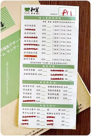 只園抹茶引頸為盼的抹茶專門店終於也開來台中這麼夯的店初期想當然爾肯定是碰不得,只能遠觀而不能褻玩焉...((煙~))和許久沒碰面的姊妹約在附近吃飯,突想起這家剛好近在咫尺既然這樣...那哪有不來朝聖的道理,是不是???縱使剛飽足飯後也容許不了再塞入一點食物入肚皮,仍是任性的拖姊妹續攤好姊妹就是要一起變肥...((現在才知道魚仔心機這麼重))只園抹茶??不是叫和茗甘味處???對啦!!!和茗甘味處和只園抹茶就是改了店名,但還是同一家店台中店改了...管它叫什麼這都不是重點,總之就還是賣我喜歡的抹茶商品立牌上的海報多讓抹茶控失了魂、坐立難安呀!!!!!!只園抹茶戶外有盛開的櫻花,在和傘下吹著徐徐微風享用抹茶甜點整個就是充斥在濃濃京都FU~猶如身歷其境般的有意思只園抹茶共有兩層樓的用餐空間一樓有吧檯沒幾張桌子,就顯得擁擠些看板上的抹茶圖片每個都好可口樣要不是因為要去趟化妝室就不會發現原來地下室才比較有看頭地下室被別有洞天濃厚的京都氛圍包圍住...席地而坐在和風禢塌米上簡直就像身處於京都一樣了嘛真開心台中居然也有這麼日式風味的甜點店~【菜單 MENU】新產品就屬鐵板抹茶熱蛋糕最為吸睛這次也可以說是專程為它前來的將決定好的餐點畫記號在上面拿至櫃檯點餐結帳即可是說,這天有好多剛好沒有供應...這麼多條紅線,有些想吃的剛好無緣【鐵板抹茶熱蛋糕】NT$200元葉片型的鐵板裝盛了抹茶蛋糕、抹茶冰淇淋中間還夾雜著磨碎的杏仁酥餅接下來還會有個淋上抹茶白巧克力醬的動作服務人員提醒"要拍照要快喔~等等要淋醬了",哈哈哈~然後我們就是一陣手忙腳亂...整個拿著相機亂槍打鳥,隨便按快門呀!!!!!!因為器皿很燙,會由服務人員來服務將抹茶白巧克力醬淋上宣洩而下的抹茶醬覆蓋在鐵板裡的抹茶蛋糕上直到全部沾滿醬料為止這景象是一種抹茶控者獨有的享受...超誘人的!!!!別說抹茶控受不了誘惑,只要是甜點控都會招架不住吧抹茶白巧克力醬接觸到高溫鐵板滋滋作響,形成大小氣泡...有吃過黑胡椒鐵板、蘑菇鐵板...就是沒有吃過抹茶鐵板,吸睛樣貌是不是直呼破表**熱度極高,避免碰觸以免燙傷**熱熱的抹茶磅蛋糕和熱熱的抹茶巧克力醬與冰涼抹茶玄米茶手工義式冰淇淋冰、熱交替的滋味有點奧妙,說不出來的感覺...建議與朋友分食著吃較為剛好【蹶餅白玉綜合】NT$130元蹶餅被黃豆粉蓋了厚厚一層,我超喜歡黃豆粉的味道...將搭的黑糖蜂蜜糖漿洋洋灑灑淋在上頭QQ軟軟在口中漸漸溶的感覺以及黃豆粉充斥的滋味難怪在日本會是家喻戶曉的庶民點心說起來跟咱們的涼糕也有雷同...只是多了黃豆粉味道就差很多白玉丸子...日本的商品名稱都好好聽喔((在台灣就叫湯圓...))只園的白玉比台灣湯圓的Q度明顯多了,咀嚼在口中糯米香氣溢出沒有甜味的白玉可以搭著金時((台灣叫紅豆XD))、黃豆粉一起吃風味更佳…查看更多