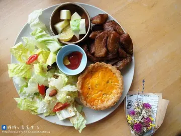 由老屋改建的咖啡廳,可以攜帶毛小孩前來品嘗美味的鹹派,店家亦有自製毛小孩的食物喔!