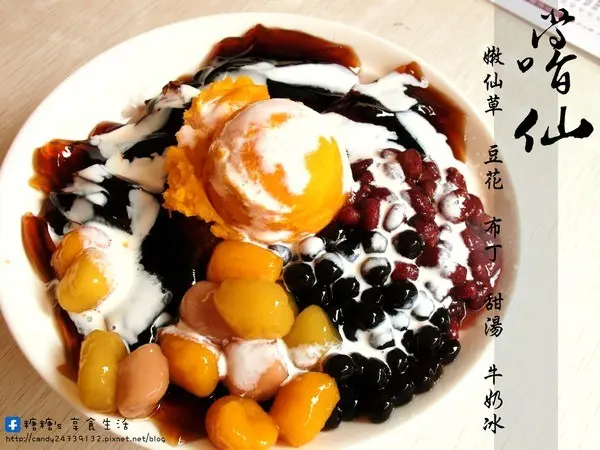 配料部分都是自己手工熬煮,用料很實在,餐點品項也非常多樣,像是嫩仙草系列豆花系列、布丁系列、黑糖凍系列、甜湯系列、剉冰系列、特調飲品等甜品通通有 除了夏季冰品外,冬季也推出限定甜品,像是燒仙草系列及甜湯圓都是超人氣款嚐仙手工芋圓芋泥專賣店目前共有四間分店,創始店位於台中南區,美村南路上另外三間則是開在南部高雄這邊,五福店、巨蛋店及岡山店,將來也會慢慢往北部發展 環境乾淨明亮,別於一般傳統冰店的裝潢,話說嚐仙已經開兩三年了店面依舊保持完美糖糖剛到店時還以為嚐仙手工芋圓芋泥專賣店才剛開不久,沒想到已經開一陣子了呢店內有提供內用的座位,雖然沒有涼涼的冷氣,不過沒關係,冰一吃下立刻就消暑囉菜單好大一張,裡面的字密密麻麻的,光看這張menu就知道嚐仙賣的東西有多多 嚐仙:〖美食│甜品〗嚐仙手工芋圓芋泥專賣店 ❤ 好吃甜品推薦!!配料堅持純手工製作,真材實料,冰品、嫩仙草、手工布丁、黑糖凍、芋圓系列通通有~~推薦芋泥、芋圓及地瓜泥!! 嫩仙草、豆花、布丁、黑糖凍、甜湯、剉冰、飲品系列冬季也有推出燒仙草、湯圓等熱呼呼的甜湯,嚐仙讓你夏天消暑,冬天暖呼呼 話說老闆以前可是國家體育代表選手,因為親戚賣嫩仙草,退休後老闆就跟著邊學邊賣上手之後就自創"嚐仙"這個新品牌,開店至今已有三間加盟店,真的是太強招牌黃金地瓜泥黑糖凍 60元 在外面比較常吃到仙草凍,所以糖糖選了少見的黑糖凍試試一端上桌就被他們配料給嚇到,也太多了吧,滿到快掉下來了,這一碗應該要兩人分食以黑糖凍為基底,搭配一整球的黃金地瓜泥,還有自製熬煮的珍珠、紅豆及芋圓底下還有清涼的黑糖剉冰,冰量跟甜度可以做調整,也可以選擇是否添加鮮奶油淋上鮮奶油果然不一樣,讓整碗黑糖凍變得更加繽紛 先來嚐口黑糖凍的滋味,外表看似像仙草,卻有截然不同的香氣,Q彈中帶點微微的脆度入口滑嫩,慢慢咀嚼,帶著淡淡的黑糖香,搭配鮮奶油風味更是迷人,這款黑糖凍好吃 嚐仙的手工芋圓共有三種顏色,口感Q軟帶咬勁,每一口都吃的到食材原有的清甜雖然芋圓是冰店都看得見的配料,到處可見,卻不一定都好吃 嚐仙的手工芋圓有在糖糖好吃排行榜裡頭,而且名次還蠻前面的呢 芋泥這個配料在冰店比較常見,地瓜泥糖糖倒是比較少看到,看這帶點橘紅色的色澤今天的地瓜泥應該是用紅地瓜下去做的,入口帶著地瓜的自然香氣與甜味,口感紮實 吃起來也不會讓人覺得膩口,好吃招牌雙芋布丁 60元 有的小朋友本身不太喜歡吃仙草或豆花,嚐仙這邊也有準備了小朋友最愛吃的布丁布丁部分也都是店家自己手工製作,不是使用"現成"的布丁配料跟剛剛的黑糖凍有點像,一樣有著芋圓、珍珠及紅豆,而主角換成了金黃色的布丁除了主角外,身邊的地瓜泥也換成了芋泥嚐仙的手工布丁口感超古溜,帶著淡淡的雞蛋香味,甜度較低,單吃味道會比較淡一些覺得味道不夠可以添加一些鮮奶油提味,讓單純的布丁多了迷人的奶香味原來鮮奶油不只加仙草及黑糖凍好吃,搭配布丁也很美味呢 糖糖很喜歡嚐仙的紅豆,顆顆飽滿綿密,吃起來不會太甜,有些店家的紅豆單吃都好甜 這個芋泥可厲害了,嚴選高品質的芋頭下去製作,口感超綿密,芋頭味好香好迷人還可以吃的到微微的芋頭塊,嚐仙的芋泥糖糖好喜歡,下次吃直接來個兩球,大推 綜合牛奶冰 70元 哇!!這碗綜合牛奶冰是否太澎派了!!配料整個裝的滿滿滿,把底下的剉冰都給覆蓋住了綜合牛奶冰可以任選五樣料,糖糖選了芋泥、花生、嫩仙草、大豆、薏仁這五樣咦咦咦~大家有沒有發現到,除了糖糖自選的五種料外,還多了一樣"西米露" 只要點選沒有招牌兩字的甜品,店家都會免費贈送西米露,等於一碗冰有六樣配料(如不添加西米露,記得要事先告知店家唷)嚐仙的配料都不錯吃,單吃都不會太甜,花生口感微脆,糖糖覺得可以再煮軟一些 薏仁有讓糖糖驚豔到,一般薏仁單吃會有苦味,有的店家為了中和苦味又弄得很甜嚐仙的薏仁單吃不但沒苦味,吃起來也不會很甜膩,好吃堅持自己手工熬煮製作所有配料,不僅用料實在份量也很驚人,每一口都可以品嘗到店家的用心所在,這麼優質的店家不推不行…查看更多