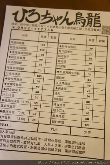 那天要去豬弟的CUBOX一中一店的路上,發現停車場這裡兩邊都開了小店,有一家掛著燈籠的貨櫃屋店特別吸引我,駐足的停了一下,店裡的一位年輕人馬上跑出來熱心招呼,並且拿了菜單給我原來是一間小烏龍麵店,怎麼那麼妙,開在停車場裡?當天因為是吃得很飽在逛街所以沒去吃,回到店裡問豬弟他們有吃過嗎?他們說還沒有,好像是新開的,這家店名我不會念耶><是寺內家ひろちゃん烏龍嗎?客滿時應該也可以端著碗公在外面的長板凳吃烏龍麵吧!然後還要翹起一隻腳就在中友百貨斜對面有一個停車場的巷子裡,一直走進來會通到豬弟的CUBOX一中一店一中街147巷那裡,店裡頗有日本屋台風情那天和布丁開東京養豬之旅會議講的太晚,於是就問他要不要一起來這間新開的烏龍麵店探險一下一看幾乎都是炸的,年紀大不想吃油膩的我只好點了綜合烏龍麵,其實我還蠻愛吃油炸物,但是怕胖又怕長痘痘,所以能避免還是避免,偶爾吃吃還行由於是一人廚師,所以像我們今天客滿時要等一下,看到那麼多人,想必口味應該不錯才是,更讓我們期待了,雖然真的等的有一點久,可是年輕人老闆很客氣,一直跟我們道歉讓我們久等了特製的豆鼓辣椒油,有那種便當店附的小魚乾豆鼓的FU喜歡吃洋蔥的我點了炸洋蔥,早知道可以不用點,因為炸蝦烏龍麵裡就有炸蔬菜,裡頭就有洋蔥了,炸過的洋蔥軟透了,甜到不行,在灑上一大堆的七味粉,太過癮了我喜歡他們家的炸皮,酥脆而不膩,炸的皮酥肉嫩,因為今天的雞翅賣完了,老闆說這個有帶腿的,所以給兩支,不然一般炸雞翅是給三支的,沒關係,我也喜歡腿肉綜合烏龍麵,顧名思義,就是通通都有了,有糖心蛋、豆皮、魚板、海帶芽與蛋酥,麵體Q彈極了,原本以為這個價位我吃到的烏龍麵會是台灣魯味常用的那種等級軟趴趴的烏龍麵,沒想到老闆的用心讓我驚訝,有手打烏龍麵那種FU,而且既使放了一下下也不會過於軟爛,依然彈性十足,湯頭也很美味,唯獨豆皮我喜歡吃更甜膩一點的那種,這裡的比較不甜,一碗90元不貴耶!炸蝦烏龍麵這樣一份也是很大器澎派大碗公的烏龍麵絕對讓男生也可以吃得很飽足,老闆~你們家的烏龍麵真的很好吃,有沒有打算做冷烏龍麵,我好想吃你們家的烏龍麵做成冷的唷!一定Q到不行除了一隻炸蝦外還有許多油炸蔬菜,我喜歡吃炸茄子沾著那個甜甜的沾醬,可能份量足夠,所以生意挺好的,人一直不斷的走進來,但是他們的座位真的太少了多點了一份糖心蛋,因為不曉得原來綜合烏龍麵裡也有放寺內家ひろちゃん烏龍台中市三民路148號旁小巷子進去第二間(掛紅燈籠處)0922-177756…Read More