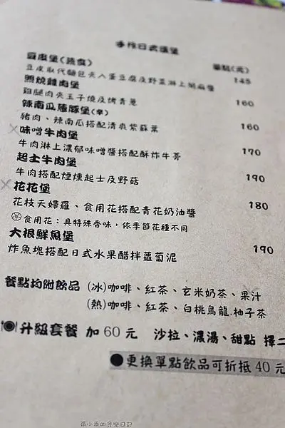 )夏季菜單的厚鬆餅口味有六種其中一種是當天才有的鬆餅這時候就詢問店家當日限定口味的廬山真面目吧! 我最愛的小豚輕食!最愛的台中厚鬆餅這一篇的照片包含了我好幾次到訪的餐點!所以現在點的話可能餐點長相會和照片有點出入不過我每次去吃餐點都長得不一樣XD但都八九不離十啦!!!!小豚風炙燒雞腿野菜盒 (280元)附好湯、麵包、薯球(此為舊照片)每次來小豚輕食吃蔬菜沙拉都覺得 世 界 飽 !(所以和朋友來吃的話我們都會點一份鬆餅和一份沙拉一起分享!就可以吃到多種口味了!)蔬菜種類很多也很新鮮、輕脆份量也很大除了蔬菜之外,還會有超好吃的吐司!除此之外還附湯、麵包、薯球雖然這個沙拉我覺得略貴但也是很對得起價格! 吻仔魚玉子燒吐司 (250元)(此為舊照片)雖然我每次都是衝著厚鬆餅到訪但上次有品嚐了吻仔魚玉子燒吐司(首度品嘗小豚的輕食類餐點XD有讓我感受到它好評的實力!)這份輕食咀嚼起來是非常濕潤的!柔嫩的玉子燒裡面保含日式醬汁我原以為玉子燒和吻仔魚會是輕淡組合疏不知是重口味呀!再搭配附贈的胡麻蔬菜沙拉就讓整份餐達到很好的平衡了! 紅豆白玉抹茶冰淇淋鬆餅 (250元)搭配飲品可以折抵40元(此為舊照片)小豚輕食的冰淇淋使用的都是明治冰淇淋唷!小豚輕食的厚鬆餅都會搭配一球冰淇淋白玉和紅豆,就是要搭配抹茶冰淇淋啦!日式甜點店的奶油總是令我著迷好清爽不油膩會讓人想狂吃我超怕遇到太甜的紅豆、太重的抹茶但是這份鬆餅的甜度我覺得拿貼得宜不會讓紅豆喧賓奪主而抹茶粉的味道也是有存在感卻不會太囂張! 青醬野菇雞肉燉飯 (200元)加80元附沙拉、湯、麵包(此為2019年7月拍攝)台中商業午餐有新選擇啦只有禮拜二到禮拜五才有供應!加價80元升級套餐後這套餐我覺得是女生肯定會飽炸的份量!這份燉飯上桌時青醬香氣即撲鼻而來但品嘗時青醬氣味卻比想像得含蓄而它的燉飯飯粒是整顆軟軟的那種! 接下來要來看我們今年夏天的重頭戲這次點的兩個口味的厚鬆餅啦!夏日輕檸愛玉鬆餅 (270元)(此為2019年7月拍攝)我期待了一年的鬆餅和愛玉的組合終於捲土重來啦!!!!!雖然小豚輕食的鬆餅大概都要等40分鐘但是堅決不使用膨脹劑、泡打粉現點現打的用心,讓我願意等待!比起某百貨公司裡的超有名日式厚鬆餅那種很棉很澎卻有點空虛的質地我更喜歡小豚輕食這樣綿密卻不失口感的厚鬆餅小豚的厚鬆餅可以吃到蛋的香氣即使直接吃原味也很令人滿足!小豚輕食的愛玉真的超Q不是那種咬了就斷掉的那種愛玉是很軟Q軟Q、咕溜咕溜的那種!!酸V的檸檬醬被吸附進厚鬆餅裡這酸酸甜甜的滋味搭配清爽愛玉完全就是夏日的最好對策! 芒裡偷閒鬆餅 (270元)(此為2019年7月拍攝)夏天就是要吃芒果啦!!新鮮愛文芒果 + 芒果香緹海鹽+芒果冰淇淋每一個元素都環繞著芒果這個主題!這道鬆餅有個很可愛的名字叫芒裡偷閒然後它的芒果真的給超多的 XD / 以上,就是我對小豚輕食的愛!我覺得小豚輕食的餐點裡嚴謹的態度,還有對食材的堅持在餐點中可以品嘗得到店家的心意!所以即使單看價格來說覺得小貴但是實際品嚐過後我覺得不會失望!這就是我口袋裡最愛的台中餐廳之一的小豚輕食推薦給大家!…查看更多