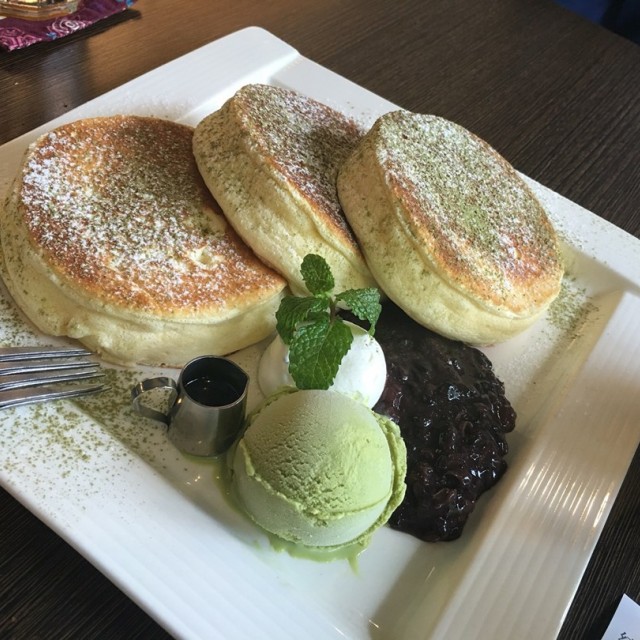 紅豆抹茶白玉冰淇淋鬆餅