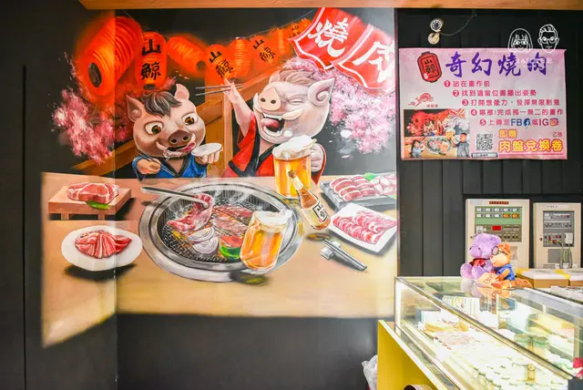 說到台中浮誇系燒肉餐廳,這間山鯨燒肉一定榜上有名,不僅裝潢浮誇,餐點更是讓你道道驚艷,份量十足又有特色,還有免費和服體驗讓你秒飛日本,好吃又好拍,台中厲害燒肉推薦,想來用餐的朋友建議提前先訂位,當月壽星還可以優惠價加購美美的手作富士山蛋糕唷山鯨燒肉漢口店位置山鯨燒肉目前台中共有兩間分店,西屯店位在西屯寶慶街上,近逢甲商圈,另一間山鯨燒肉漢口店則是位在北區漢口路四段,靠近山西路,曉明女中、天津路商圈,兩間店裝潢風格大不同,糖糖今天是來到山鯨燒肉漢口店,超大帥氣山豬招牌相當顯眼,除了路邊停車格,附近也有收費停車場,步行過來只要兩分鐘,雖然山鯨燒肉沒有提供特約停車場,不過只要來山鯨燒肉用餐提供停車票券或磁扣,即贈肉品兌換券一張山鯨燒肉漢口店環境山鯨燒肉漢口店一樓是接待處,用餐座位在二樓,整間店裝潢超浮誇,充滿濃濃日式風格,光是樓梯口處的楓葉及高掛燈籠就好好拍山鯨燒肉的用餐座位分成兩區,空間非常寬敞,白天還有美美的採光,晚上也很好拍,一邊是日本鳥居造景,中間高掛著大紅燈籠的榻榻米座位區,此區不用脫鞋子另一邊則是一般的座位區,有四人座、六人座、八人座及大長桌,非常適合多人來聚餐呢山鯨燒肉菜單 →點此山鯨極上 逸品和牛宴 雙人套餐 3480元糖糖這次點的是山鯨燒肉最新推出的逸品和牛宴,雙人套餐裡頭包含七樣肉品、開胃小菜、前菜、職人手作、時蔬、鍋物、食事、名物、漁人海鮮、甜點及飲品,品項非常豐富呢開胃小菜山鯨燒肉逸品和牛宴的開胃小菜裡頭包含醋溜細麵、胡麻龍鬚菜及韓式泡菜,糖糖超喜歡山鯨燒肉的醋溜細麵,這道可不是麵條唷,而是將新鮮馬鈴薯手工切成絲狀,川燙過後採用龍眼醋醃製而成,口感香脆,入口酸溜溜的超開胃,胡麻龍鬚菜也相當清爽開胃,最後的韓式泡菜口感爽脆,微酸微辣,單吃就很夠味,搭配肉品也很讚前菜 – 鮮活太空菇山鯨燒肉的前菜除了生菜沙拉,還有山鯨燒肉的獨家特色鮮活太空菇可以選,這款鮮活太空菇可是請新社菇農特別用採用太空包種植,服務人員會協助切成片狀下去烤至表面出水就可以享用囉,吃起來比一般杏鮑菇還有鮮甜多汁呢職人手作 – 海膽干貝一口杯挖塞~這道職人手作料理海膽干貝一口杯也太浮誇!上桌時還會慶煙呢~最底下是和風生食級海藻,上頭搭配一整顆生食級炙燒干貝,中間還加了松葉蟹腿肉及馬糞海膽,最後佐上魚子醬點綴,吃的時候將干貝直接整顆塞進嘴裡,濃濃的鮮味立刻在嘴裡爆開來!裡頭的馬糞海膽也超鮮甜,沒有可怕的腥味,搭配軟嫩肥美的干貝肉及松葉蟹肉超讚時蔬 – 櫛瓜/日本山藥套餐中的烤時蔬是櫛瓜及日本山藥,櫛瓜水份飽滿鮮甜,烤山藥糖糖也好愛,單吃不必佐醬就能品嘗蔬菜本身的鮮甜滋味鍋物 – 雞白湯獸魂鍋山鯨燒肉兩間分店附上的鍋物不一樣,西屯店是以日本大根、昆布及柴魚熬煮的京都風黃金鍋,而漢口店則是以雞骨及蔬果下去熬煮的雞白湯獸魂鍋,鍋物裡頭的配料也是誠意十足,有豬肉片、青菜、黑輪、金針菇、豆皮及各式各樣可愛的造型魚板,湯喝完都是可以再續的唷食事 – 石燒蒜蝦飯 + 199元主食的部分糖糖加價升級成石燒蒜蝦飯,使用大量蒜末、九層塔末及奶油將飯拌勻,上頭蝦子可大有來頭,先將蝦殼去除後熬煮成濃郁湯汁,接著讓蝦肉吸附著濃郁蝦湯,最後用石鍋盛裝,讓裡頭的蒜蝦飯多了鍋巴的口感,這到香氣十足,讓人吃上一口就停不下來食事 – 海膽.白蝦.和牛 +249元除了剛剛的石燒蒜蝦飯,糖糖食事還額外加價升級了這道海膽.白蝦.和牛,看起來有點厲害,也是在高級日本料理店才會看到的餐點呢服務人員會協助先將海苔稍微烤過,再包入北海道海膽、富山灣白蝦洋蔥碎和牛及赤醋飯,變成了握壽司的模樣,是道結合海陸風味的握壽司,口感超鮮甜,層次相當豐富呢,好吃名物 – 財富自由的吐司 +499元原本套餐中的名物只有一種口味的吐司或可頌,糖糖直接加價升級成財富自由的吐司,一次可以吃到四種風味的炸和牛菲力吐司,使用和牛菲力油炸至三分熟,搭配特調醬汁及烤製兩面金黃的生吐司,口感香脆,裡頭的菲力牛排更是外酥內嫩又多汁,再搭配現刨松露奶醬、北海道馬糞海膽、法國魚子醬及日本鱒魚卵四種奢侈食材,不僅視覺饗宴Level up,更增添層次感呢漁人海鮮 – 極上紋甲花枝刺身 +119元沒想到在燒肉餐廳也可以吃到頂級紋甲花枝刺身,在紋甲花枝上頭佐上昆布鹽,生食級紋甲花枝口感相當軟嫩,會讓人越嚼越鮮,搭配微鹹的昆布鹽一同享用,層次更加豐富緊接著重頭戲登場啦,這次山鯨燒肉的逸品和牛宴雙人套餐中共有七道肉品,包含A5白老和牛小排、頂級澳洲和牛排、澳洲和牛小排、伊比利豬梅花、A5月見松露和牛、A5金磚燒佐橙香醋及澳洲和牛舌,肉品呈現方式也非常浮誇,採用了寶箱盛裝,將寶箱打開,裡頭還會冒煙呢,每道肉品旁邊都會附上專屬的品名木牌烤肉品時店家會附上山鯨燒肉主廚以水果及紅酒下去特製的舒芙醬汁,可以先沾上肉品再下去烤,別有一番風味唷肉品 – 澳洲和牛舌將澳洲和牛舌切成薄片狀,只需烤一面,待出水後再搭配特製蔥鹽就可以享用囉,山鯨燒肉的澳洲和牛舌好吃,吃起來QQ脆脆的,有了特製蔥鹽的加持,香氣更加迷人呢肉品 – 澳洲和牛小排選用澳洲肋脊部的牛小排,富含大理石紋油花,分布勻稱,雖然油花沒有像日本和牛那