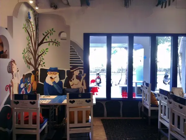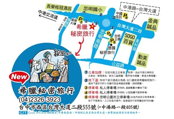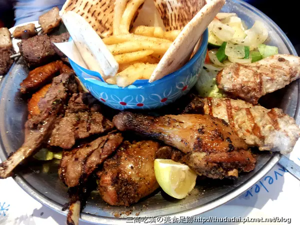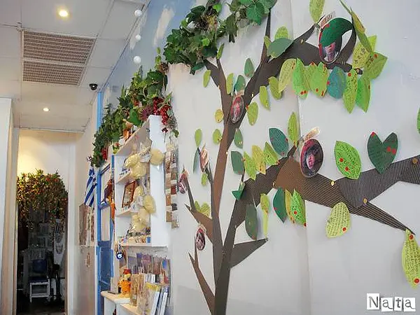 由於搬新家才發現希臘秘密旅行離新家那麼的近,這家也是我很想來一嚐的一家餐廳,跟德國秘密旅行系出同門,請參閱童話故事般的秘密旅行德國~阿wing生日趴 這也是一家超熱門餐廳,不預約的話恐怕也沒有位置,今天很幸運的竟然沒事先預約就有位置了耶!!可是由於第二天是他們的公休日,很多招牌菜色都沒有了,有點給他小可惜…在一整排黑呼呼的公寓中,希臘秘密旅行的白特別顯眼.... 雖然不是開在很熱鬧的街上,生意卻是那麼的好,不得不佩服店家… 這個紫藤蔓的感覺真棒,上面可都是手繪的唷!! 跟德國秘密旅行一樣都有等候區看門狗,我被他嚇了一大跳,乍看之下以為是真的,這隻狗玩偶有大隻一進門就感覺很希臘,連招呼語都是希臘話,整個服務的流程感覺跟德國秘密旅行很像,就是熱情.貼心.有互動,我個人比較偏愛德國秘密旅行,因為那邊有更多更有意思的小裝飾品,明信片上回去德國秘密旅行時都買齊了,所以今天就沒買明信片了兩位很入境隨俗的阿花戴上花圈,關於希臘秘密旅行的菜色,大家可以參考他們的網站,他們的網站真的設計的很好,圖文並茂希臘秘密旅行 一定會給你一張明信片讓你寄回去,就愛他們這種貼心有趣的小動作啦!! 今天的座位超棒是我最愛的沙發旁邊還有璧爐唷!!整個就是超有fu喔!!這些我都超想把它給帶回去啦!!很美的瓷磚耶!!看到這個我就超想搬去希臘住的,只有爽字可以形容,好像外國人都是那麼悠悠 哉哉的生活,真好耶!!奶油馬鈴薯濃湯,我實再是吃膩了這道湯了,怎麼每一家好像都會出這款湯呢?? 但是沒有不好喝啦!!是我自己個人問題,ㄏㄏ!! 餐前麵包~口感帶咬勁,很像我們的山東芝麻大餅,沾著他們的黃瓜優格醬吃很特別,優格醬我喜歡,不會太酸,甜甜的好好吃戴奧尼索斯菲塔捲~好長的名子阿!!也就是煙燻火腿包裹著蔬菜沾酸甜的菲塔起司醬吃(老實說,菲塔起司醬跟沾麵包的優格醬好像唷!!)據說這是希臘酒神戴奧尼索最愛的點心呢!!這樣吃沙拉感覺很清爽,煙燻火腿的滋味好香啊!! 祕密薯條真的超好吃,跟德國秘密旅行的薯圈圈一樣讚,外脆內軟,口感綿密,現在 好多餐廳的薯條都比麥當勞好吃了耶!!薯條上好像灑上日本的七味粉在搭上他 們的自製蕃茄醬,讓我忘了要減肥另外特別推薦一定要點他們的洋蔥圈,真的是香甜酥脆,不是那種鹽酥雞攤上的那種洋蔥圈唷!!是整個新鮮的洋蔥去炸的,它的麵衣調味的又酥脆又好吃,整口咬下洋蔥的鮮甜湯汁會滿滿溢出,好幸福唷!!而且口感不會太油膩呢!米克諾斯紅酒牛肉加香料飯~整個紅酒牛肉非常甜美,應該是加入了大量的蔬菜,牛肉燉的軟嫩,入口即化,配香料飯初嚐一口覺的香料味太重,但是後來卻越嚼越香,很想再續飯呢!!旁邊醃漬小菜開味可口,絕對不能錯過 希臘式冰拿鐵與可樂 【 ←回到班機降落的秘密機場 】【希臘 秘密旅行】‧地址:台中市北區五權路594號‧電話:( 04 ) 222-35765‧營業時間:11:30am~22:00pm ‧休假:每月最後一星期的週一公休…查看更多