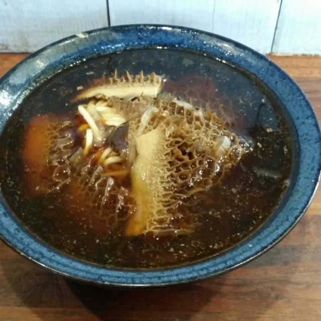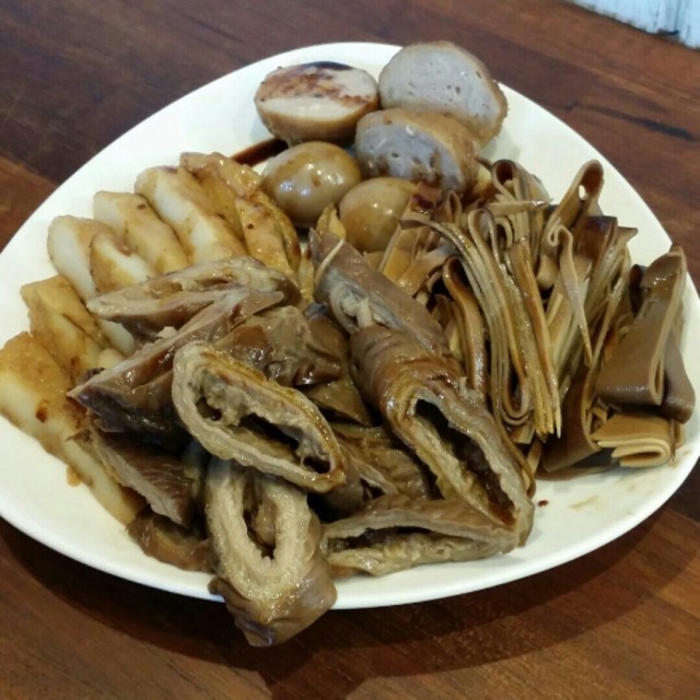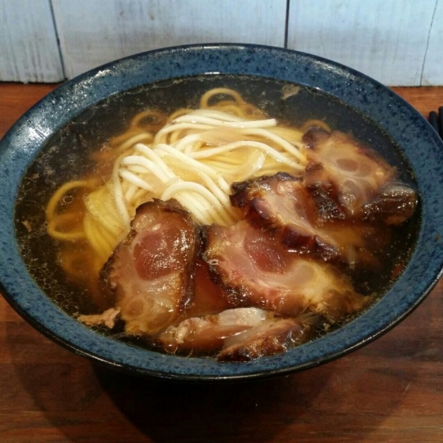 「怒騾子麵店」座落在潭子中山路上,提供眷村滷味及麵食,舉凡牛肉麵、陽春麵、炸醬麵、撈麵、各式小菜、飲料及湯品等等。怒騾子,是指脾氣暴燥的騾子嗎!?我想只有這家店的老闆才會知道吧!座落在潭子省道中山路旁的怒騾子麵店,特殊的店名加上顯眼的外觀,引起了我們的好奇心。原本預定用餐的店家沒開,於是在附近繞了好幾圈,就在我們找不到要吃什麼的時後,這間怒騾子麵店出現在我們眼前,當下馬上決定,就是這間了。於是在週遭的路邊找好停車位之後,便步行前往這家店用餐。在未踏入店家之前,門口的大面落地門窗吸引了我的目光,而上頭似乎還有寫了幾行字,店家堪稱,湯底採用牛骨、蕃茄、澳洲腱、洋蔥、老薑…等自然食材熬製,不添加醬油、味精、高湯粉,對於現代人愈來愈講究食材及添加物,採用天然食材來調理的店家,應該會更讓人接受吧!除了營業時間的公佈外,吸引我目光的是這幾張座椅,就放在門口旁,似乎是給外帶等候的客人稍作歇息的。當我第一眼看到店家的地板及座椅時,感覺頗有復古的風味,不過在踏入店家後,發現櫥備區所塑造的情景,讓人眼睛唯之一亮,大面的磚牆紋路設計搭配頗有現代風格的廚房設備,好不有趣啊!這算是復古風之中帶有現代時尚感的設計嗎!?畫面不只特別,而且沒有違和感,個人真的蠻喜歡這樣跳Tone的風格的。即使是價目表也設計的非常有創意,也因為這樣的創意讓人想多看一會兒。店內安排的座位數並不多,約能容納十幾位用餐的人,不過不得不說一下,用餐區的牆面又是另外一種跳Tone的風格了,塑造的頗有海洋的風味,有海洋、棕櫚樹、陽光、沙灘融合在一起的錯覺。一旁復古風的櫃子抽屜裡放置了用餐器具,可自行取用。從櫃檯拿到的菜單,從中一覽可得知店家主要提供麵食及滷味小菜兩種選項,當中還有飲料及湯品可以選擇。至於滷味小菜如果不知如何挑選的話,店家也有提供超值拼盤,由店家幫忙分配小菜。跟老闆喊了幾道餐點後,東西也很快地上桌了,首先來的是滷味拼盤。【超值滷味拼盤】, 這一盤100元沒有特別選定的話,滷味小菜的內容就由老闆挑定,而這一盤滷味包含了六樣小菜,至於是那六樣,沒有特別問過,不過每一道吃起來都覺得很入味,滷汁的味道恰到好處,吃起來順口又唰嘴。【乾撈麵】,一碗40元這碗撈麵特別的地方在於它的麵條的咬勁及滷汁的味道,每一入口的麵條,都有滷汁的香氣,而且入味又富彈性,個人非常喜歡,好吃到兩三下就把這碗撈麵嗑光光,意猶未盡啊,感覺沒有吃飽,所以後面又點了一碗炸醬麵嘍!【怒騾子陽春湯麵】,一碗50元看到撲克梅的陽春湯麵上桌,讓我後悔沒點這道,因為看起來好大一碗,麵條擺放有序,搭配一點點白菜襯色,即使在普通的一碗陽春麵也會覺得美味!根據店家桌面上的提示寫著,陽春麵的湯底採用豬骨、老薑…等自然食材慢火細熬,並以甘蔗取代味精、高湯粉,呈現出醇濃豬骨香的自然風味。基本上這碗陽春麵屬於清香風味的湯頭,淡淡的鹹味,喝起來也不油膩,而麵條的口感不輸撈麵,有咬勁且咀嚼充滿彈性,搭配湯汁,滑溜入口,相當好吃呢!【炸醬麵】,一碗60元份量也是不多,不過麵條的上頭淋了不少炸醬配料,像是切丁的豆干及碎滷肉,這一碗麵口味上是恰到好處,我覺得不論是吃重口味或是輕淡口味的人都適合,而當中也拌入了一些切絲小黃瓜,所以口感上多了一道清脆的口感,整體吃起來帶點爽口不油膩的感覺。【豬脆管】老闆佛心來的,突然招待了我們一道小菜,說是店家的招牌滷味小菜。脆脆的口感,咀嚼起來相當有彈性,搭配滷汁的味道,和拼盤中的小菜一樣好吃。吃麵就是這麼快,不到二十分鐘的時間,全部嗑光光,帶著滿意的表情離開。怒騾子麵店意外發現的麵食館,卻是讓人意外的好味道,用餐環境獨具特色,塑造氛圍也很融洽,餐點料理口感與味道,會讓人想一試再試,像是陽春湯麵、乾撈麵,不過部分麵食感覺份量較為少一點,像是乾撈麵、炸醬麵,至於價格的部分,覺得還可以接受,整體而言;是一間值得推薦的麵食店。…查看更多