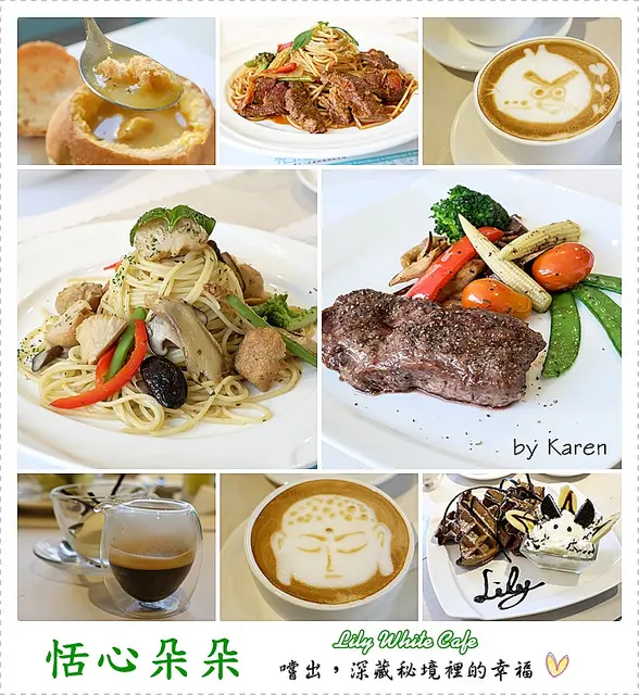 恬心朵朵位在西區向上北路,旁邊就是豆腐35和艾可先生話說這家是從員林發跡後來台中開的第一家分店,朋友大推薦叫凱倫一定要嚐嚐看純白色再加上粉嫩的Tiffany綠為主色簡單又大方不小心就拍了有170多張……xd所以一直放著不想去碰它整理照片時有種快吐血的fu 最後簡化成47張出爐前台的接待區一樓一樓的座位不多,大多是二人位接著這裡應該是往二樓的閣樓(可以說是一樓半嗎?)裡頭正有人在用餐,拍照得左閃右躲的再來是二樓店家擺放了很多可愛的動物玩偶圖中還有大隻的版本耶,好想買幾隻回家放二樓大多是四人桌白色再加上粉嫩的馬卡龍系列色彩看了心情就覺得好好 椅子還蠻好坐的最後上來三樓喔喔~好童趣風的三樓設計很適合有帶小朋友的小家庭地板還有一塊是假綠草地呢~挺喜歡這排椅子的後面還有一區包廂可以在這裡舉辦人數不多的小小同學會或是聚會拜訪的二次都在試賣期(試賣期已經過了…>"<)之後的餐點和價目不知道會不會有所變動?換麵、加麵或是換醬底得酌收20元價目都是單點價恬心套餐+120:羅曼凱撒沙拉+主廚濃湯+手作麵包+飲料(100元以內)+甜點朵朵套餐+150:羅曼凱撒沙拉+法國球主廚濃湯+飲料(100元以內)+甜點二個套餐的差別就在於濃湯部份桌紙印得還挺有fu的 這隻KITTY拉花是我看在門口看板上的照片點的一掃在先前某店家的不愉快事件雖然說咖啡的拉花又不影響咖啡的風味但是影響的是心情 莫名地咖啡也變得特別好喝又順口 喝了一口,KITTY一秒變狐狸實在是太有梗太有戲了!!! 拿鐵單點價是130 ,點了輕食再加40即可不過要KITTY拉花要註文喔~不然KITTY變普通的愛心或是小花就只能嘆氣了 方鑽佛克夏迪克蛋佐燻雞肉 149沙拉清脆,搭配的是和風醬佛卡夏麵包上頭放了顆班泥迪克蛋,再灑上凱撒醬當蛋液流緩而下混合凱撒的濃郁略鹹口感一整個很滑順好入口 炒菇很juicy有入味燻雞肉則是略有咬勁佛卡夏麵包也是好好味難怪在員林這麼有人氣,早午餐真的很不錯!!!再來,朋友相約來恬心朵朵吃吃午餐,順便約幾個朋友聚會一下這頓吃到最後有點一發不可收捨因為友人請客所以大家猛點友人的荷包乾扁扁 但是大家吃得很開心套餐的羅曼沙拉羅曼很清脆不帶苦味反而是愈吃愈甜其他還有水煮蛋、麵包丁、蕃茄再灑上蒜粉搭配的是凱撒醬不過凱倫覺得單吃生菜就不錯吃 值得嘉獎的是醬汁是另外盛裝的 愛吃多少沾多少醬,皆大歡喜法國球主廚濃湯直接把麵包剖開來,放入南瓜濃湯南瓜濃湯把南瓜甜味都給煮出來了偶爾再挖到南瓜泥或是麵包丁其實整顆麵包都可以食用,不過這樣子後頭就沒戲唱了所以我只有把上蓋給吃掉上蓋的麵包很酥脆,沾著濃湯吃很棒呢 清香麻油頂級猴豆菇義大利麵 (奶素) 220看到菜名感覺就是非常的養生也挺少見到清炒麻油的麵條Q彈,可惜湯汁收太乾猴頭菇凱倫還是第一回吃,不過沒什麼菇味記得前幾週有看到美食節目在討論猴頭菇,說菇味是普通菇的35倍 店家應該是沒有把猴頭菇給料理好但整體來說這一道還算不錯~是中國傳統的名貴菜肴,肉嫩、味香、鮮美可口。是四大名菜(猴頭、熊掌、海參、魚翅)之一。有「山珍猴頭、海味燕窩」之稱。《中國藥用真菌》記載:「猴頭菇味甘、性平、能利五臟、助消化、滋補、對消化不良、神經衰退與十二指腸潰瘍及胃潰瘍有良好的功效。」因此,廣泛的將猴頭菇應用於食道癌、胃癌、十二指腸癌等消化系統的腫瘤治療上。經多種臨床實驗證明,經常服食猴頭菇會增強人體消化系統的免疫功能。其營養價值極高。胺基酸種類多過16種以上,並含有多種維生素和較高的礦物質成分。猴頭菇還含有很多藥效成分。具有利五臟、助消化、滋補身體等功能,對消化不良、胃潰瘍、十二指腸潰瘍、神經衰弱均有一定療效。同時,猴頭菇還含有多種糖類物質對癌細胞有明顯的抑制作用。以上引自維基百科清香麻油頂級猴頭菇義大利燉飯 240這一道的名字和上一道的麵幾乎一樣但是吃起來差異頗大,因為還有放奶奶味蓋過麻油味燉飯的份量超級多,不過吃起來的口感很一般般紐西蘭原切鹽燒菲力 460 (內附恬心套餐一份)吼吼~寫到這一道,先讓凱倫把嘴邊的口水擦掉先XD光是看這斷面秀的小粉紅就知道既嫩又多汁 超級juicy肉質又新鮮簡單的鹽巴和黑糊椒調味就非常的棒了配菜也炒得很美味雖然價格是貴了些,但是非常值得!!!有機蛋燒奶香培根綜合野菇義大利麵 220 這一道屬於偏清爽型淡淡奶香加上培根和菇類有加奶最怕吃了會膩,這一道倒是不會不過不適合重口味的朋友,會覺得平淡了些茄汁泡菜特級牛小排義大利麵 230這一道還挺妙的,沒想到蕃茄配泡菜碰撞出來的味道挺開胃也不錯吃 不過牛小排就沒有方才的菲力嫩畢竟部份不同,價位也有差整體而言很不錯!!!最後的甜點是奶酪最上面是鳳梨丁和芒果醬不過芒果醬給太少了,到最後只剩奶酪有點孤單 後來又有加點些輕食帕瑪森紅醬雞腿帕尼尼 149其實我已經吃太飽了 只切了一小塊吃,覺得普普~米奇巧克力熔岩可可鬆餅 200 是說最後的end一定要是個甜點才是雖然有加巧克力下去製作鬆餅不過吃起來的口感似乎不是很優(膩口)冰淇淋我沒什麼沾,有點忘記是怎樣的了飲品集中在後面一併來說義式香草冰淇淋咖啡 150 義式濃縮咖啡再加入香草冰淇淋上頭還有杏仁片和巧克力片濃濃的咖啡和冰淇淋,苦中帶甜很有成熟大人