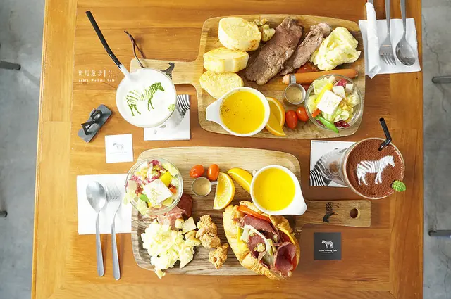 斑馬散步咖啡Zebra Walking Cafe台中市西區五權一街5號週二~週日 09:00-17:30 (週一公休)04-2378-0515 用餐日期:2020/10/03(六)這天來到斑馬散步咖啡Zebra Walking Cafe享用早午餐,斑馬散步咖啡位於台中市立美術館附近的巷弄中,店面非常漂亮,門口有個小庭院,花花草草很適合拍照,斑馬自製的山形生吐司新鮮上架中。 店內裝潢隨處可見斑馬的元素,以黑白色系為主輔以木質元素,是間非常有格調的餐廳。 斑馬散步咖啡有兩層樓,當天被安排在二樓的位置,店內採自助式服務,餐具茶水自取,無收服務費,每人低消$120元,選好餐點後需自行至櫃台點餐結帳。 點了兩份主餐,舒肥調理豬排跟鮮蝦酪梨,隨餐附紅茶一杯,亦可升級菜單後方的單點飲品,可折抵$40元。 舒肥調理豬排 佐奶油芥末籽醬 山形吐司 $280 使用舒肥低溫熟成的腰內豬排,吃起來非常軟嫩,撒上些許調料就非常美味,一旁還有生菜沙拉跟帶皮起司馬鈴薯塊。 斑馬自製的山形生吐司,側邊還偷偷烙上了斑馬的印記,用手撕開柔軟富彈性的生吐司,撲鼻而來的滿是麵包的香氣,這款自製的生吐司帶著奶油的香味,口感及味道上都很可以呢! 巧克力摩卡奶霜咖啡 $150(餐點折抵$40) 男友點的飲品是巧克力摩卡奶霜咖啡,鮮少嘗試黑咖啡或拿鐵以外的咖啡飲品,對我來說感到驚奇,尤其是上頭的斑馬,再次呼應了店名「斑馬散步咖啡Zebra Walking Cafe」! 斑馬散步咖啡的這款巧克力摩卡奶霜咖啡相當有層次,彷彿咖啡上方飄了一塊提拉米蘇蛋糕,苦甜苦甜的奶霜相當綿密,不過飲用時要小心被可可粉嗆到~ 酪梨鮮蝦 脆皮圓法 $275 前陣子家裡很著迷酪梨,這天便點了酪梨鮮蝦的主餐,脆皮圓法、生菜沙拉、炒蛋、德式香腸及薯條,是款多樣化,富含豐富色彩的一份主餐,是我蠻愛的樣多量少組合! 酪梨醬裡放有大量生洋蔥,帶點嗆辣和微酸,剛入口時沒有發覺,稍微有點被洋蔥的辣度嗆到,可以搭配麵包或生菜,脆皮圓法中夾著三隻蝦蝦,新鮮無可挑剔,不過相較生吐司,脆皮圓法比較難咬一些,但是麵粉香氣挺適合搭酪梨醬~其他像炒蛋、薯條和德式香腸都很好吃:) 經典美式 $120元 (餐點折抵$40) 斑馬散步咖啡的經典美是較為一般,不過也是蠻大一杯的,足以補充我每日需要的咖啡因! 斑馬散步咖啡其實是當天臨時找的店,不論是裝潢、氣氛和餐點,個人覺得水準都算是中上程度,當天用餐下來非常舒適放鬆,是間想分享給朋友的店,真心推推!…查看更多