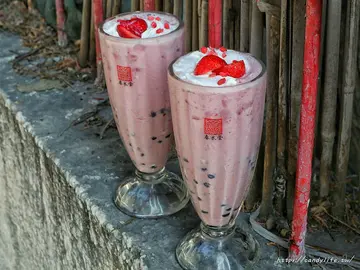是說吃過這麼多次春水堂,糖糖倒是沒去過總店,決定這回季節限定的新品草莓奶霜珍珠茉奶來春水堂總店品嘗品嘗春水堂總店位在四維街上,靠近台中女中,裝潢充滿古色古香,充滿著古典美總店魅力果然不凡,糖糖這天來店裡頭可是客滿狀態,不管平假日生意都超好的地板上寫著世界珍珠奶茶發源地,沒錯!春水堂就是珍珠奶茶的發源地,有人不知道的請舉手((默默舉手XD草莓奶霜珍珠茉奶 135元期待已久的草莓奶霜珍珠茉奶終於登場啦~是說一杯其實不太便宜,要價135元,甜度跟冰塊都是固定的無法調整,入口奶茶中多了茉香味及草莓的酸甜,上頭搭配奶霜及新鮮草莓糖糖覺得喝起來有點像草莓奶昔的口感,裡頭還加了珍珠,春水堂的珍珠比較小顆一點,甜度上對糖糖來說稍微偏甜了些內用杯裝美美的,外帶其實也很療癒,如果甜度再低一點,糖糖會更愛一些 …查看更多