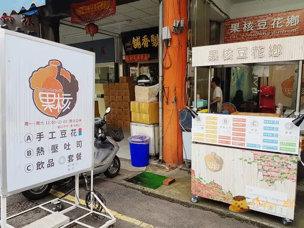 鄰近一中商區有間熱壓吐司店搭配手工豆花加飲料這麼豐盛的套餐組合竟然百元有找揉眼...我有沒有看錯啊「果核豆花鄉」靠近熱鬧的一中商圈低調的店面不是太顯眼但很多學生卻熟門熟路的來報到路橋對面大地標是太平國小沒有華麗的店面與高貴的裝潢取而代之是實在的料理與親民的價格銅板價...銅板價...全是銅板價全部來一份的大滿足套餐也只要99元店內座位區用彩繪牆簡單妝點空間不大僅有四張四人位剛到時全處於客滿的狀態還好沒等太久一下就有位置嘍手工豆花有經典花生.茶香紅豆.方塊粉圓.蜂蜜愛玉.有料芋圓.美白薏仁多種口味想要一次滿足的話可選MIX版本熱壓吐司現點現烤會稍微等候一下飲料自備瓶子環保價可優惠5元土司鹹甜口味都有圖片中每款配料都疊得和小山一樣用料實在價位卻是如此佛心三個願望一次滿足推薦大家點大滿足套餐(豆花+熱壓吐司+飲品 NT.99)如果不太餓記得選小輕食套餐也是超划算(熱壓吐司+飲品 NT.60)檸檬奶油卡士達+豆漿紅茶餐點擺在木托盤裡送上桌質感度整個up~up~熱壓過的吐司因細心去邊很是柔軟藍莓醬與檸檬卡士達都帶點酸溜創意的是中間竟夾入餅乾方塊粉圓+燻雞起司雞腿排+紅茶拿鐵+水果豐盛度滿點不論是當早午餐或下午茶吃完肯定超飽足又元氣滿滿雞腿排疊上生菜.番茄與牽絲起司超厚切的吐司剖面也太誘人特地留下一條吐司壓邊又吃得到另一種像餅乾棒的脆口感超級喜歡這碗手工豆花吃了一口黑糖方塊覺得自己真是點對了小方塊狀的粉圓造型可愛又可口除了有珠珍的咕溜又比市售粉粿多了Q勁本以為豆花會被粉圓比下去沒想到這手工豆花也不是省油的燈綿密的傳統豆花有時會有過於鬆散的問題但這碗豆花就像是充滿膠原蛋白的少女肌啊飲料選用玻璃密封瓶盛裝豆漿味濃與紅茶兩者很搭紅茶拿鐵剛上桌時充滿漸層看著鮮奶與紅茶慢慢渲染還挺美的愛評體驗團特別邀約體驗活動果核豆花鄉地址:台中市北區中華路二段151號電話:0912-364-724時間:11:00~21:00(週日休)  創作者介紹    棉花糖布丁              Pudding's Life…查看更多