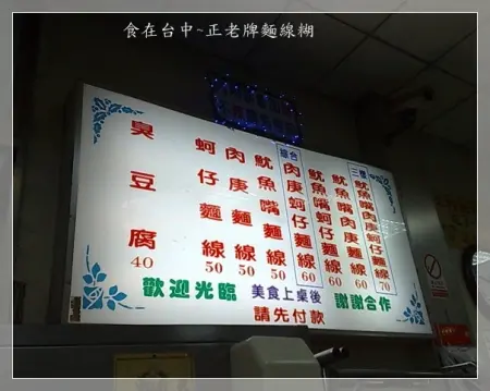 [食在台中]忠孝夜市之正老牌麵線糊-肉庚麵線 正老牌麵線糊電話:22879468店址:台中市南區合作街70-2號營業時間:15:00~24:00,假日至凌晨1:30 通常會點臭豆腐&麵線這天臭豆腐賣光了,只能嗑麵線 肉庚麵線$50多數付錢的人都不是我現在po文時看價目表才知道這樣一碗要50元(呷米不知米價,就是在說我這種人吧)點餐時會問要不要加辣?辣的會直接加沙茶花椒小辣蠻香的很大一碗,不算太貴 4~5塊小塊的肉庚麵線不是糊爛的,還不錯吃雖說是麵線糊我可不喜歡爛糊芡粉勾一堆的那種不知道是吃麵線還是吃太白粉?生意很好,有時一位難求下回想吃~魷魚嘴麵線糊,看起來不錯內!…查看更多