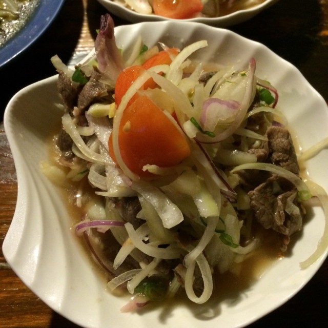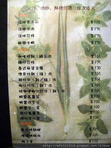 朋友帶我來到這間小有名氣的泰式料理店,店名就叫作:泰小間真的好小間.....連招牌也看起來歷史悠久@@ 沒來過的人,一經過完全不會發現招牌,因為店外上方沒招牌..特別註明:趕時間及不耐煩請勿入內XDD菜單~一樣看起來歷史悠久,這間的老闆很有個性喔~~~~~這邊可以選擇三樣350元喔~我們選了:泰式烤雞腿、咖哩炒雞肉、辣炒豬肉。這邊另外點了月亮蝦餅~單點價250元喔~甜點部分則是點了香蕉煎餅。白飯一碗要15元~可是吃起來沒有很Q,不是泰國米= = 咖哩雞肉來了~這是綠咖哩唷!有個椰奶的香氣,我覺得濃淡剛好啦,也沒有什麼辣度~醬汁拌飯很讚唷~照片拍起來很大盤,其實是小小盤的而已啦....雞肉很嫩唷~不會柴柴的。這倒我還挺喜歡吃的,清爽~有香氣,味道也不錯唷。泰式烤雞腿~這道看起來很優捏~外皮烤的很香,可是有點油^^|||裡面的雞肉不會很薄~而且裡面有肉汁喔~油脂都烤出來了,但單吃沒味道,一定要沾他附上的泰式醬料~醬料味道我覺得也還好不會太重口味,略有甜甜的不會太過酸鹹辣!!泰式烤雞腿只會想吃一塊而已,沒有第二塊的慾望耶....或許我會比較喜歡椒麻雞辣炒豬肉~實在是有點油!!!味道部分我覺得挺清淡的耶,而且也沒有什麼辣度所以想吃辣一點的,可以跟老闆說要中辣或者大辣唷!!如果這拿來這拌飯的話,我會更喜歡咖哩雞肉的醬汁來拌飯~豬肉還不錯吃,QQ的,肥瘦剛好,口感還不錯唷~~~月亮蝦餅~250元挺有厚度的,但是還是適合多人一起分食比較好,我們兩個人根本吃不完@@好厚唷!而且裡面有滿滿的蝦肉唷,可是不知道為何~~我沒特別喜歡外皮則是酥酥的有加分到~放涼一下子,皮也不會馬上軟掉唷!兩個人點一份蝦餅我比較不推薦,大家斟酌摟><~其實兩個人吃以上那些已經很飽了~沒想到還來甜點~讓我有後悔點它的感覺....看起來外觀加分許多~炸過的煎餅皮酥酥脆脆的~淋上煉乳以及巧克力醬裡面則是夾了香蕉片,一份60元其實這價位還可以接受嚕。外皮真的超酥的,很像炸餛飩的外皮,酥酥又脆脆的!裡面的香蕉超級給它扣分@@應該是冷凍香蕉吧~吃起來拋拋水水糊糊的~不喜歡不喜歡><~裡面沒有什麼甜度,所以會另外附上煉乳以及巧克力是自己淋的多淋一點挺好吃的,可是熱量也高~為了我的肥肚肚,我還是少淋點好了XDD…查看更多
