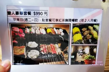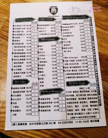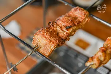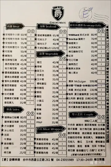喜歡吃燒烤、串燒但又懶得動手的非常適合台中這家唯一360度自動旋轉的居酒屋串燒店!來爵旋轉串燒炭烤吃飯只要將食材放在烤爐上就可以自動旋轉燒烤完成,讓你喝酒聊天忘記顧爐子也不至於食物整片焦黑 😎 而且營業時間到晚上11:30,讓你下班小酌和三五好友吃宵夜也有地方去~爵旋轉串燒炭烤就在華美街與公正街的交叉口,鄰近草悟道、綠園道、向上市場及公益路商圈,所在區域可說是非常繁華,不過店址隱身在巷弄裡,算是老饕才會知道的居酒屋串燒店,騎機車前來有門口的騎樓可以停放,開車的話我們是停在1h/$20元的大益停車場。爵旋轉串燒炭烤環境曾在英國留學的老闆將店內環境打造的很有異國風味,濃濃英倫工業風格讓人彷彿置身在國外。爵旋轉串燒炭烤菜單酌收10%服務費。每人低消$250元。禁帶外食。用餐時間限時2小時。帶酒酌收開瓶清潔費$200/瓶。提供兒童座椅。可包場舉辦活動。爵旋轉串燒炭烤的串燒類價位落在$30~$120元之間,幾乎每串都是$50元有找的銅板價,這價位真的出乎我意料的平價耶!我原先還以為會每串$100元起!菜色的話有肉類、肉捲、海鮮、蔬果、伴食、飲料酒類、及雙人套餐這七大系列,牛豬雞蝦魚通通吃得到,如果不想思考的話可以點雙人套餐!菜色上的差不多就會將加熱好的炭火放置到爐子裡,炭火熱氣很高,在烤的時候要稍微注意一下。含牛肉串、鹹豬肉、墨西哥梅花豬、台式香腸、德式香腸、秘方梅花豬、香料去骨雞、墨西哥雞翅、脆皮雞翅、青蔥培根捲、杏鮑菇培根捲、丸子三兄弟、薄鹽鯖魚、花枝丸、小黃瓜、玉米筍、四季豆、鳳梨、火烤炸豆包、香菇、棉花糖、香蒜麵包*2、白飯*2、紅茶*2泡菜開胃的泡菜比較酸比較辣,建議敢吃辣敢吃酸的人在食用,我是只吃微辣的人,一口就不行了XD白飯香Q的白米飯單吃就不錯,上頭的七味粉是我們自己加的,這樣拍比較有顏色 😆 白飯拿來配泡菜或是肉類都很合適。食材上來的時候就可以每空一格齒輪放置食材,避免較寬的項目打到旁邊的而無法選轉,像這樣一爐可以放至少六根串燒。香蒜麵包烤好的香蒜麵包外面酥脆裡頭蓬鬆柔軟,加上迷人的蒜香讓人覺得只吃一個根本不夠 😮 不過剛烤完會很燙,建議放一下比較不會燙到嘴巴唷!松阪豬黃色鳳梨右邊的是松阪豬,不吃牛肉的人可以將套餐裡的牛肉串換成松阪豬,松阪豬烤到金黃色的口感焦脆Q彈帶點油質相當誘人啊!不太需要動手就可以享受到美食~而且服務人員還會隨時來關心我們食材烤好了沒,炭火要是變小了也會幫忙處理。鳳梨厚度十足的鳳梨香甜好吃一點也不酸,烤到外層微乾即可食用,如果你不想烤要直接吃也是可以啦 😆青蔥培根捲青蔥培根捲外層培根脆脆的,加上多汁的青蔥使口感更加豐富,以口味來說還滿解膩的~薄鹽鯖魚爵旋轉串燒不會因為價位便宜就馬乎用料,連薄鹽鯖魚都是選用挪威的品種,將魚肉烤到逼出油質到魚皮焦焦脆脆的鹹香好吃,魚肉口感扎實沒有魚腥味,是連怕吃魚的我也覺得好吃的!烤好的食材可就在爐子上方的架子,不用讓桌上堆滿碟子還可以比較快放涼好食用!丸子三兄弟丸子三兄弟有香菇、芹菜、荸薺這三種口味,外脆內彈牙的香氣很足夠,愛吃丸子類的人必點這個!墨西哥雞翅、脆皮雞翅兩種口味的雞翅烤到表層起泡就可以了,外皮酥脆肉質軟嫩的口感讓人覺得這樣不夠吃啦 😯墨西哥梅花豬、秘方梅花豬梅花豬有秘方和墨西哥兩種口味,肉質扎實帶點咬勁也吃得到肉汁,而且一點也不柴唷!兩種口味我們都喜歡~德式香腸、杏鮑菇培根捲德式香腸拿來配酸黃瓜最對味了!因為一般我們吃熱狗堡就會加酸黃瓜和番茄醬~鹹香的杏鮑菇培根捲因為裡頭包著清爽的杏鮑菇,吃起來也比較耐吃。花枝丸花枝丸烤到外表呈現金黃色樣貌就可以吃囉,外脆內彈牙的,比煮的還要好吃。杏鮑菇像杏鮑菇、四季豆、玉米筍、香菇這樣的蔬菜類都很新鮮,只要烤到外表略乾出汁就可以,接著沾著特製的濃郁胡麻醬汁很容易讓人一口接一口!火烤炸豆包火烤炸豆包一樣烤到有點分離且金黃色的口感脆脆的很適合當下酒菜,單吃沒有什麼味道,我覺得沾著胡麻醬汁很搭!棉花糖套餐最後的甜點為棉花糖,原以為是那種美國人吃的超甜棉花糖,沒想到甜度是出乎意料的低耶!低到我們各吃兩顆吃完也不覺得甜!棉花糖插著不是尖頭的尾端放在烤爐上烤,烤到這樣的樣貌真的有雲朵般的輕盈細緻口感,想吃棉花糖又怕甜可以試試他們家的棉花糖甜點!翡翠絲瓜蛤蠣 $80整碗放在炭火上面烤到鋁箔紙起泡即可,裡頭有豐富的蛤蠣及絲瓜,加上薑絲一起煮開來以後,湯頭清爽解膩又鮮甜,薑絲香氣十足喝起來很過癮!飲料套餐附的紅茶甜度還滿剛好的,不會太甜,而且還可以免費續一次!爵旋轉串燒炭烤的餐點價位親民,加上方便好實用又有趣新鮮的料理方式,根本是懶人的福音~食材的話,肉品幾乎都有調味過,如果你不是吃重口味的人其實不用沾醬就很夠味,不管是價格還是環境上來說都很適合親子家庭、情侶約會、三五好友聚餐,下次有機會約多一點人來這把所有食材都吃一輪吧,方便且特別又營業到很晚的居酒屋串燒店推薦給愛跟朋友熱鬧吃宵夜的你 😎…查看更多