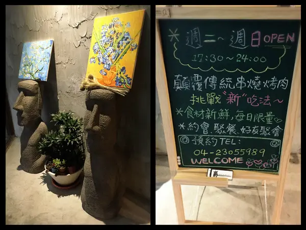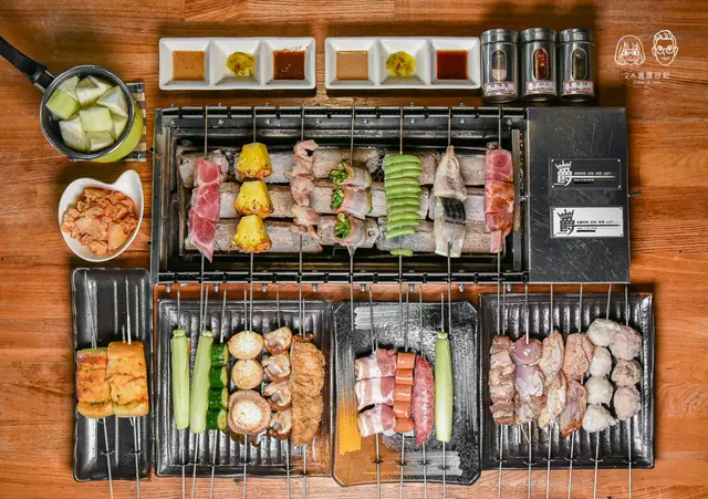 喜歡吃燒烤、串燒但又懶得動手的非常適合台中這家唯一360度自動旋轉的居酒屋串燒店!來爵旋轉串燒炭烤吃飯只要將食材放在烤爐上就可以自動旋轉燒烤完成,讓你喝酒聊天忘記顧爐子也不至於食物整片焦黑 😎 而且營業時間到晚上11:30,讓你下班小酌和三五好友吃宵夜也有地方去~爵旋轉串燒炭烤就在華美街與公正街的交叉口,鄰近草悟道、綠園道、向上市場及公益路商圈,所在區域可說是非常繁華,不過店址隱身在巷弄裡,算是老饕才會知道的居酒屋串燒店,騎機車前來有門口的騎樓可以停放,開車的話我們是停在1h/$20元的大益停車場。爵旋轉串燒炭烤環境曾在英國留學的老闆將店內環境打造的很有異國風味,濃濃英倫工業風格讓人彷彿置身在國外。爵旋轉串燒炭烤菜單酌收10%服務費。每人低消$250元。禁帶外食。用餐時間限時2小時。帶酒酌收開瓶清潔費$200/瓶。提供兒童座椅。可包場舉辦活動。爵旋轉串燒炭烤的串燒類價位落在$30~$120元之間,幾乎每串都是$50元有找的銅板價,這價位真的出乎我意料的平價耶!我原先還以為會每串$100元起!菜色的話有肉類、肉捲、海鮮、蔬果、伴食、飲料酒類、及雙人套餐這七大系列,牛豬雞蝦魚通通吃得到,如果不想思考的話可以點雙人套餐!菜色上的差不多就會將加熱好的炭火放置到爐子裡,炭火熱氣很高,在烤的時候要稍微注意一下。含牛肉串、鹹豬肉、墨西哥梅花豬、台式香腸、德式香腸、秘方梅花豬、香料去骨雞、墨西哥雞翅、脆皮雞翅、青蔥培根捲、杏鮑菇培根捲、丸子三兄弟、薄鹽鯖魚、花枝丸、小黃瓜、玉米筍、四季豆、鳳梨、火烤炸豆包、香菇、棉花糖、香蒜麵包*2、白飯*2、紅茶*2泡菜開胃的泡菜比較酸比較辣,建議敢吃辣敢吃酸的人在食用,我是只吃微辣的人,一口就不行了XD白飯香Q的白米飯單吃就不錯,上頭的七味粉是我們自己加的,這樣拍比較有顏色 😆 白飯拿來配泡菜或是肉類都很合適。食材上來的時候就可以每空一格齒輪放置食材,避免較寬的項目打到旁邊的而無法選轉,像這樣一爐可以放至少六根串燒。香蒜麵包烤好的香蒜麵包外面酥脆裡頭蓬鬆柔軟,加上迷人的蒜香讓人覺得只吃一個根本不夠 😮 不過剛烤完會很燙,建議放一下比較不會燙到嘴巴唷!松阪豬黃色鳳梨右邊的是松阪豬,不吃牛肉的人可以將套餐裡的牛肉串換成松阪豬,松阪豬烤到金黃色的口感焦脆Q彈帶點油質相當誘人啊!不太需要動手就可以享受到美食~而且服務人員還會隨時來關心我們食材烤好了沒,炭火要是變小了也會幫忙處理。鳳梨厚度十足的鳳梨香甜好吃一點也不酸,烤到外層微乾即可食用,如果你不想烤要直接吃也是可以啦 😆青蔥培根捲青蔥培根捲外層培根脆脆的,加上多汁的青蔥使口感更加豐富,以口味來說還滿解膩的~薄鹽鯖魚爵旋轉串燒不會因為價位便宜就馬乎用料,連薄鹽鯖魚都是選用挪威的品種,將魚肉烤到逼出油質到魚皮焦焦脆脆的鹹香好吃,魚肉口感扎實沒有魚腥味,是連怕吃魚的我也覺得好吃的!烤好的食材可就在爐子上方的架子,不用讓桌上堆滿碟子還可以比較快放涼好食用!丸子三兄弟丸子三兄弟有香菇、芹菜、荸薺這三種口味,外脆內彈牙的香氣很足夠,愛吃丸子類的人必點這個!墨西哥雞翅、脆皮雞翅兩種口味的雞翅烤到表層起泡就可以了,外皮酥脆肉質軟嫩的口感讓人覺得這樣不夠吃啦 😯墨西哥梅花豬、秘方梅花豬梅花豬有秘方和墨西哥兩種口味,肉質扎實帶點咬勁也吃得到肉汁,而且一點也不柴唷!兩種口味我們都喜歡~德式香腸、杏鮑菇培根捲德式香腸拿來配酸黃瓜最對味了!因為一般我們吃熱狗堡就會加酸黃瓜和番茄醬~鹹香的杏鮑菇培根捲因為裡頭包著清爽的杏鮑菇,吃起來也比較耐吃。花枝丸花枝丸烤到外表呈現金黃色樣貌就可以吃囉,外脆內彈牙的,比煮的還要好吃。杏鮑菇像杏鮑菇、四季豆、玉米筍、香菇這樣的蔬菜類都很新鮮,只要烤到外表略乾出汁就可以,接著沾著特製的濃郁胡麻醬汁很容易讓人一口接一口!火烤炸豆包火烤炸豆包一樣烤到有點分離且金黃色的口感脆脆的很適合當下酒菜,單吃沒有什麼味道,我覺得沾著胡麻醬汁很搭!棉花糖套餐最後的甜點為棉花糖,原以為是那種美國人吃的超甜棉花糖,沒想到甜度是出乎意料的低耶!低到我們各吃兩顆吃完也不覺得甜!棉花糖插著不是尖頭的尾端放在烤爐上烤,烤到這樣的樣貌真的有雲朵般的輕盈細緻口感,想吃棉花糖又怕甜可以試試他們家的棉花糖甜點!翡翠絲瓜蛤蠣 $80整碗放在炭火上面烤到鋁箔紙起泡即可,裡頭有豐富的蛤蠣及絲瓜,加上薑絲一起煮開來以後,湯頭清爽解膩又鮮甜,薑絲香氣十足喝起來很過癮!飲料套餐附的紅茶甜度還滿剛好的,不會太甜,而且還可以免費續一次!爵旋轉串燒炭烤的餐點價位親民,加上方便好實用又有趣新鮮的料理方式,根本是懶人的福音~食材的話,肉品幾乎都有調味過,如果你不是吃重口味的人其實不用沾醬就很夠味,不管是價格還是環境上來說都很適合親子家庭、情侶約會、三五好友聚餐,下次有機會約多一點人來這把所有食材都吃一輪吧,方便且特別又營業到很晚的居酒屋串燒店推薦給愛跟朋友熱鬧吃宵夜的你 😎…查看更多