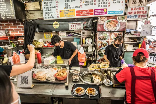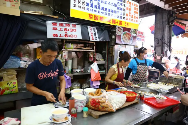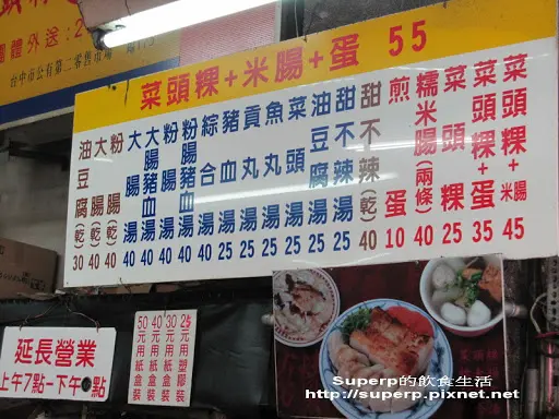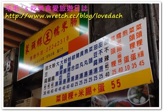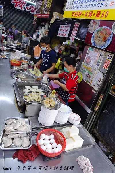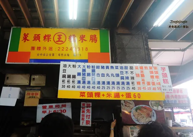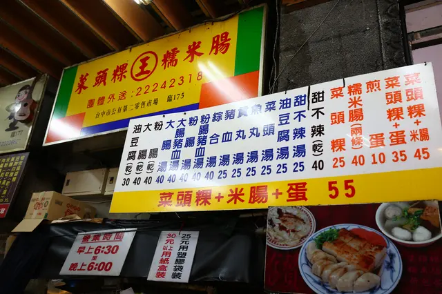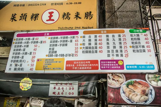 台中第二市場中的王家菜頭粿糯米腸,是一家沒有什麼裝潢的店家,而且座位就在騎樓上,但卻總是大排長龍的熱門店家,招牌的蘿蔔糕、糯米腸,再加上一碗湯,幾乎是每桌必點的。另外對面的老賴紅茶,排隊人潮同樣也是不遑多讓,到底這兩家的魅力在哪?來一探究竟吧!.王家菜頭粿糯米腸是艾方妮的口袋名單,自從在美食節目看過介紹後,就一直想來嚐嚐,所以這天第二市場第一攤就是這裡了!其實王家菜頭粿糯米腸在市場中不算是個店家,比較像是一個攤子,座位區是設在騎樓上,幾乎都是得跟別人共桌。我們是一個人去點餐,另一個人去找位置。餐台上就是他們的廚房,有煮鍋及煎台。菜頭粿的用量極大,一旁放著準備隨時下鍋。芋頭糕好像也蠻多人點的。負責煎台的工作人員,幾乎手都是不停歇的。因為客人一直不斷上門,才煎好的餐點馬上就裝盤端走。而且為了消化客人,在騎樓上另設了一個煎台。瞧瞧這個陣仗,就知道生意有多好了!因為這天第二市場我們還有想吃的名單,因此兩個人只點了一份餐及一碗湯。菜頭粿 $30+米腸 $20+煎蛋 $10=$60其上淋的是醬油及一點點甜辣醬,吃來鹹鹹甜甜的。不過把蛋撥開後,可以發現無論是蘿蔔糕、蛋及米腸,顏色都很白,感覺沒有煎得赤赤的,有點小失望。可能是艾方妮從小吃大的高記,因為採高溫油炸,所以邊角都是酥脆的,對於入口很軟的蘿蔔糕及米腸就覺得沒那麼討喜了!但醬料很古早味,所以搭起來還是覺得不錯!有沒有覺得高記這炸過的金黃色澤,再加上蒜末,實在太令人垂涎了呢?另外王家菜頭粿糯米腸這價錢跟高記比起來,也沒那麼可愛。不過煎及炸的料理方式不同,也不好比較了!甜不辣湯 $25這說是甜不辣,但應該是黑輪。湯頭像是煮關東煮的湯,所以很甜且很清爽,是搭配其他餐點很棒的配角。…查看更多