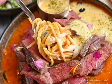 說到台中浮誇系義大利麵,這間瑰覓義大利麵一定是榜上有名,每每推出新品都讓人驚艷不已,用料超實在,不僅餐點浮誇,口味更是創意十足,從醬汁到肉品都是由老闆精心研發製作,光是醬汁就有10種,糖糖還蠻推薦新推出的泰式苳陰功酸辣醬,還有金沙醬、XO蝦醬等都是外面少見的醬汁~瑰覓義大利麵位在西屯文華路上靠近西安街這邊,鄰近星享道酒店,瑰覓義大利麵的店面在二樓,入口處從黑色樓梯直接上去就對了瑰覓義大利麵裝潢走工業風路線,店裡頭各個角落擺放著老闆私藏的黑膠唱片,讓整間店充滿復古的氛圍瑰覓義大利麵還特別設置了網美打卡牆,等待餐點上桌前可以先來拍照打個卡瑰覓義大利麵菜單金苳蒜炸雞翅 269元瑰覓義大利麵這道金苳蒜炸雞翅共有三種口味,分別是鹹蛋、泰式苳陰功醬及獨門蒜炒醬,讓大家可以一次吃到三種風味的現炸雞翅,糖糖最愛獨門蒜炒醬,裡頭添加了12種中藥材及蒜頭下去爆香炒製,蒜香味十足,鹹蛋炸雞翅也不錯,鹹蛋的用料很實在,讓多汁鮮嫩的雞翅的鹹蛋的迷人鹹香,泰式冬蔭功口味比較偏酸辣風味,還蠻清爽的,是說這三種口味都還挺下酒的呢B套餐 109元只要點義大利麵、燉飯或披薩都可升級套餐,糖糖選了B餐,多了焗烤香蒜軟法麵包及脆皮薯條,現炸薯條口感超酥脆,現烤麵包也好好吃B套餐裡頭還包含了一碗熱呼呼的野菇玉米濃湯,湯頭濃郁,裡頭還吃的到香甜玉米及野菇木碗沙拉 加購價 59元木碗沙拉有凱薩醬跟和風柚子醬兩種,瑰覓義大利麵的沙拉裡頭還挺豐富的,有生菜、蘋果、番茄、火龍果、堅果等配料,糖糖個人偏愛凱薩醬多一些蔥爆鹹豬肉清炒蒜味義大利麵 359元將義式結合台式口味的蔥爆鹹豬肉清炒蒜味義大利麵,採用台灣豬肉,搭配香菇、洋蔥、蒜頭、辣椒及蔥花下去爆炒,裡頭還添加了一樣秘密武器,就是新鮮的蛤蜊原汁,讓層次更加豐富這道義大利麵雖然是以清炒方式,不過口味還挺重的,吃起來帶有濃郁的蒜香味,裡頭的鹹豬肉肥瘦勻稱,肥肉Q彈不軟爛,瘦肉軟嫩不乾柴,單吃鹹香迷人,沒想到鹹豬肉不只下飯,還挺下麵的(笑)糖糖還蠻喜歡這道蔥爆鹹豬肉清炒蒜味義大利麵的醬汁,蒜香味非常濃厚,吃起來帶小辣,Q彈麵條吸附著醬汁,讓人一口接一口泰式苳陰功透抽義大利麵 429元泰式料理中的人氣泰式苳陰功,沒想到除了火鍋湯頭,還可以做成義大利麵的口味,採用南薑、香茅、生辣椒、檸檬葉、魚露及檸檬特製的泰式苳陰功醬,主餐糖糖搭配的是澎湖新鮮透抽~第一次吃到泰式苳陰功口味的義大利麵真的好特別,吃起來偏酸辣風味,爽口又開胃,喜歡泰式風味的朋友可以試試爆量嫩肩牛火山熔岩起司義大利麵 539元這道爆量嫩肩牛火山熔岩起司義大利麵一上桌立刻驚豔全場,這如果還不浮誇,還有誰可以更浮誇!美的就像藝術品一樣,上頭還用了食用花點綴,裡頭的牛肉可是整整用了兩大塊的嫩肩牛排,光是這肉量就可以讓糖糖保的不要不要的,更別說底下還有義大利麵啦瑰覓義大利麵這道爆量嫩肩牛火山熔岩起司義大利麵的牛肉是選用澳洲嫩肩牛,一次就給兩大塊超霸氣,牛排煎至約7分熟,肉質還呈現粉嫩色澤,牛肉香氣十足,口感更是鮮嫩多汁,建議大家鮮品嘗牛肉原味,再搭配熔岩起司享用這款爆量嫩肩牛火山熔岩起司義大利麵有橘醬泡菜醬及明太子醬兩種可以選擇,糖糖選的是橘醬泡菜醬,採用韓國泡菜下去製作而成的橘醬泡菜醬,讓微酸微辣的醬汁中多了泡菜的香氣蔥爆鹹豬肉披薩 399元除了義大利麵,披薩也是必點的人氣招牌,瑰覓義大利麵的披薩是採用長方形的手作羅馬披薩,糖糖點了剛剛大獲好評的蔥爆鹹豬肉口味,瞧瞧上面的蔥段就知道老闆用料有多實在!採用台灣豬、香菇、洋蔥、蒜頭、辣椒、蔥花下去爆香, 裡頭一樣添加了秘密武器新鮮的蛤蜊原汁,糖糖覺得比起義大利麵,這款蔥爆鹹豬肉披薩更能品嘗到蛤蜊的鮮甜,讓鹹香的蔥爆鹹豬肉披薩層次更加豐富美味水蜜桃氣泡飲 110元/蘋果果醋百香氣泡飲 110元/桑椹醋氣泡飲 110元炎熱天氣來杯氣泡飲解解膩,瑰覓義大利麵的氣泡飲口味非常多樣化,糖糖這次點的是水蜜桃氣泡飲、蘋果果醋百香氣泡飲及桑椹醋氣泡飲,糖糖最愛蘋果果醋百香氣泡飲,喝起來酸酸甜甜的,裡頭還可以吃到清脆的百香果籽,另外兩杯也不錯喝~瑰覓義大利麵這次推出的新品又讓糖糖大大驚艷啦~尤其是爆量嫩肩牛火山熔岩起司義大利麵這道,…查看更多