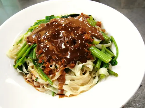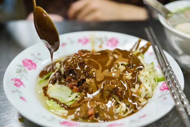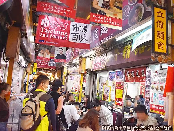 每次因故來到台中特別是中區,喜歡逛市場的我們若選擇中午用餐地點,十之八九就會到美食小吃林立的第二市場來覓食。阿發也已介紹過好幾家,在這第二市場內或周邊的店攤,這回再來推薦一攤,麻醬控不能錯過,店家自製香濃麻醬隨你加,因〝一麵三吃〞更加聞名的市場內老字號「立偉麵食」~▲台中第二市場內一景有百年歷史,人氣美食林立的台中第二市場每到用餐時段,市場內總有著川流不息的人潮~▲台中第二市場內,指標以前像我們這種外地人在這市場內,常會逛到迷失方向,近些年在市場內,設置了讓人一目了然的方向指標。▲店攤前人潮中午用餐時段,走道上的座位也都是滿滿的人。▲店攤外觀從店外可以看到廚房乾淨與否,以及烹調過程,讓人可吃得相對安心。▲透明玻璃牆上,貼了許多媒體與名人來訪的採訪照「立偉麵食」是市場內知名的人氣老字號之一,當然也有許多媒體與名人來造訪過。▲店內用餐區用餐時段總是座無虛席,用餐環境雖有點歲月感,但以市場內的店攤而言,還算頗乾淨。▲菜單餐點類別主要分為:麵類、飯類、羹湯類、羹麵類、湯/乾皆可類、湯類、菜頭粿+米腸+蛋、單點、各式燙青菜▲菜單,套餐組合餐點價格加起來相較划算▲醬料店家自製醬料,竟還有一大桶的...▲店家自製麻醬隨你加,感覺很濃稠香,麻醬控有福了~▲我們的午餐我們的餐點是:超值套餐 110元(主餐三選一:一麵三吃+副餐三選一:綜合湯+紫蘇梅汁)經典套餐 130元(主餐四選一:肉丸仔飯+副餐三選一:鮮蝦大餛飩湯+紫蘇梅汁)菜頭粿+米腸+蛋(芋)60元燙青菜40元▲我們的午餐,俯視▲菜頭粿+米腸+蛋(芋),外觀被荷包蛋蓋住了,看不太出來在下面的菜(芋)頭粿+米腸▲菜頭粿+米腸+蛋(芋),剖面菜頭粿、芋頭粿都是店家自製,且現點現煎,表面煎至金黃微酥,加上醬汁更是提味。米腸則是表皮不僅酥脆,還類似鍋巴的口感,裡面的米粒則保有軟Q度。▲紫蘇梅汁沁涼解渴好喝,開胃去膩。▲燙青菜▲綜合湯湯料有:油豆腐、豬血、蘿蔔、貢丸、魚丸、甜不辣,料好實在、湯頭爽口。▲肉丸仔飯肉燥飯+3個肉丸仔▲肉丸仔飯,特寫傳統的紅蔥頭滷肉燥,加上蔥花提味,成了一碗樸實簡單的古早味好吃肉燥飯。▲肉丸仔,剖面肉丸仔是由溫體豬絞肉,再搭配蔭瓜、香菜、芹菜、黑胡椒...等下去捏製,吃起來札實有口感,並含有脂汁鹹香與餡料獨特香氣。但由於肉丸仔中有蔭瓜、香菜、芹菜、黑胡椒,這幾種食材多為好惡兩極,點前可要多斟酌。▲鮮蝦大餛飩湯碗內滿滿的鮮蝦餛飩,並撒入一把海苔絲,更增添視覺上的美味感。▲鮮蝦大餛飩湯,特寫飽滿的鮮蝦餛飩,粒粒透出裡面有著蝦紅色澤。▲鮮蝦大餛飩湯,湯頭鮮甜爽口▲鮮蝦大餛飩,剖面鮮美Q彈的蝦仁包覆在餛飩裡▲一麵三吃店家著名的〝一麵三吃〞,就是在乾麵上大致分成三區塊,再分別淋上花生醬、肉燥與麻醬,可以分開吃,也可以攪拌後一起吃,看客人開心要怎吃、就怎吃!另麵中還有附上一些燙青菜,份量相較一般麵攤給的多。▲一麵三吃,特寫店家自製麻醬與花生醬很濃稠香醇,麵條攪拌後,兩種醬料與肉燥黏著在麵條上,口感偏重,但卻帶有邪惡的香氣與滋味啊!是相當獨樹一幟的〝一麵三吃〞。▲麻醬隨你自己加店家自製濃稠香醇的麻醬,隨客人自己加,真是佛心來的,麻醬控可千萬別客氣!不過提醒一下,若加過量口感會偏重膩,也會搶了原餐點本身的風味喔~▲留影「立偉麵食」是台中第二市場內30多年的人氣老字號,一麵三吃的風味與吃法獨樹一幟,其他麵食小吃則有著傳統簡單樸實的滋味。另外,店家自製濃稠香醇的麻醬隨客人自己加,真是佛心來的!喜歡吃傳統重口味麵食與麻醬控的朋友們,可前往一試喔~…查看更多