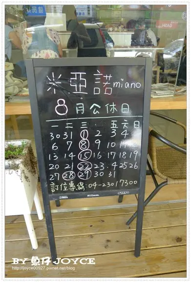 米亞諾 (台中) 網址: https://s.openrice.com/cHRSmW2wiy0W0 地址: 台中西區美村路一段264號 電話: +886 0423017300