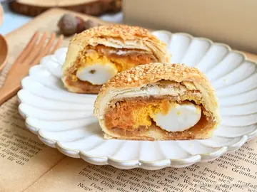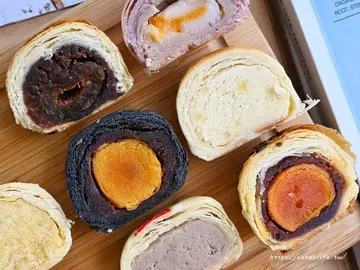 還記得去年網路爆紅的暗黑蛋黃酥嗎,今天再度強勢回歸啦!去年糖印麵包一推出這款歐罵罵的暗黑蛋黃酥立刻爆紅,訂單滿到做不出來,今年又開始悄悄上市啦,去年沒買到的朋友,今年趕緊先來糖印麵包給他訂起來,除了暗黑蛋黃酥,還有另外六種口味月餅及干貝XO 3Q餅糖印麵包這次推出了兩款中秋禮盒,有12入及9入禮盒,內容物均可客製化,不僅可搭配月餅,還有手工餅乾可以選擇,月餅是三顆為一組,如果送禮給長輩,糖糖還蠻推薦糖印麵包的12入禮盒,採用大紅色系包裝禮盒,加上燙金LOGO,大送禮氣,不只禮盒,就連紙袋也相當有質感,很有潮牌牛仔褲的FU呢糖印麵包另一款9入禮盒走比較活潑年輕的路線,以鵝黃色搭配可愛的手繪圖案,這禮盒包裝糖糖也蠻喜歡的小月餅拿起來沉甸甸的小月餅,香酥的外皮,內餡是甜而不膩的白豆沙餡,搭配奶粉製作而成,口感綿密,入口除了豆沙的香甜,還多了迷人的奶香味芋頭酥外表樸實無華,上頭印著一個芋字,可想而知一定是芋頭口味來著,一切開芋頭香氣四溢,採用大甲新鮮芋頭製作而成的芋泥餡,一般外面的芋頭酥甜度都會比較高一些,糖印麵包的芋頭酥不會,整體吃起來不會太過甜膩,芋頭香氣十足,芋頭控必嘗流心流沙芋頭酥另外這款是剛剛芋頭酥的升級版,淡紫色的香酥外皮,切開裡頭除了綿密的芋頭餡,還多了Q軟的麻糬及流沙餡,多了流沙的迷人鹹香,層次更加豐富美味,這口味糖糖也好喜歡綠豆碰長輩們最愛的傳統綠豆椪,內餡當純使用綠豆沙餡沒有混合其他食材,比起一般的綠豆椪口感更加細緻綿密,老闆也特地降低甜度,讓綠豆椪吃起來不會這麼黏膩,配上無糖茶更讚梅子酥這款梅子酥也是讓糖糖吃了驚豔不已的月餅之一,第一次吃到梅子入料的月餅,香酥的外皮,蔓延著梅子的酸甜氣息,裡頭還可以吃到Q軟的梅子果肉,吃起來酸酸甜甜的,清爽不甜膩,這口味長輩們也超尬意紅土蛋黃酥糖印麵包的蛋黃酥相當大顆,除了原味紅土蛋黃酥,還有歐罵罵的暗黑蛋黃酥兩種口味,原味紅土蛋黃酥選用法國發酵無水奶油來製作餅皮,刷上一層蛋液下去烤至金黃色澤,口感微酥,香氣十足,切開裡頭的鹹蛋黃有夠大顆,口感濕潤,鹹香迷人,搭配甜而不膩的紅豆沙餡,讓人欲罷不能呀,好吃~暗黑蛋黃酥這款就是網路爆紅的暗黑蛋黃酥,歐罵罵的外皮是採用竹炭粉及芝麻製作而成,中間一樣包入一整顆的鹹蛋黃,搭配手工自製的紅豆沙餡,外皮香酥不油膩,濃郁的鹹蛋黃香氣,交織著綿密細緻的紅豆沙餡,整顆吃完也不會讓人覺得膩口,不僅好吃又吸睛呢干貝XO 3Q餅糖印麵包的3Q餅相當特別,內餡除了肉鬆、鹹蛋黃、麻糬外,還添加了干貝XO醬,外皮酥脆,伴隨著迷人的芝麻香氣,內餡相當紮實,除了肉鬆及鹹蛋黃的鹹香,還多了干貝XO醬的濃郁香氣,多了麻糬的Q彈,層次相當豐富呢方度乳酪曾被評選為東京車站名產商店街必買伴手禮的方度乳酪,在糖印麵包也可以吃到啦~嚴選來自北海道十勝地區優質乳原料及四葉十勝鮮奶油乳酪,乳酪香氣相當濃厚呢方度乳酪小小一顆共有三種吃法,冷凍吃起來就像冰淇淋口感,冷藏吃起來像紮實的乳酪蛋糕,加熱吃就像熔岩般的乳酪蛋糕,乳酪香氣相當濃郁,入口即化,甜而不膩,建議加熱10-15秒,如果加熱太久就會變成一攤乳酪啦(笑) 中秋送禮最佳首選,糖糖還蠻推薦糖印麵包的中秋禮盒,可以客製化自由搭配,七款月餅都好好吃,甜度不高,很適合不吃甜食的長輩們,還有日本超夯的方度乳酪,在糖印麵包也吃的到唷~…查看更多