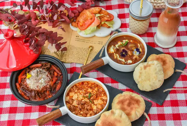 台中野餐拍照打卡秘境景點再添一處!位於台中太平區酒桶山-法蝶旁的「藏寶莊園」可將酒桶山的日出、日落及星空夜景盡收眼底,來「藏寶莊園」住宿同時可以用餐品嚐老闆娘親手做的料理,說是景觀餐廳也不為過呀!而外頭還有一處經過佈置不太會曬到太陽的戶外野餐區,場地更提烤肉等服務不只適合三五好友相聚,同時也是情侶約會的熱門勝地!入園採預約制,只接受臉書粉絲團訊息預約洽詢,不接受電話預約,不接待未預約貴賓。藏寶莊園交通車子開上酒桶山快到「藏寶莊園」時會看到一個小下坡,但不能往下坡的方向開,要往上坡的酒桶山休閒園區方向行駛,開往酒桶山-法蝶方向才是對的,經過酒桶山-法蝶的停車場後就能看到「藏寶莊園」門口掛上的三角旗裝飾(一路上會有路牌指示,可以的話副駕駛記得幫忙注意唷!)如果不知道怎麼開可以直接導航酒桶山法蝶這個地標,到深山就會出現橘色的藏寶莊園道路指標。這天我們上來的時候剛好遇到一組帶著兔子來野餐住宿的客人下山,車子可停在這片平地上,停車挺方便的。藏寶莊園因為是在山坡地沒有架設柵欄等因素,入園請注意安全,且不能隨意攀折花木及傷害野生動物唷。潔白的店內環境使用了不少乾燥花來點綴,完全就是拿來打卡拍照的餐廳景點!第一次到這樣的來到這樣的用餐環境讓身為女生的我內心彭湃不已XD上頭的透明天花板掛上白色絲布是不是超浪漫!如果穿著合適的話,在這肯定能讓女生們拍到不想回家!除了一般的座位以外還有和室內用空間,三五好友席地而坐多愜意。不管從什麼角度來拍都能感受到環境的美感以及純白無瑕的無重力自在氛圍。鹹食的部分有炸物、濃湯、及野餐的無菜單料理,無菜單料理每次來不見得相同,想吃什麼可以到櫃檯詢問看看這次的餐點是什麼。這麼優美的環境當然更少不了下午茶甜點,超浮誇的雲朵可頌也是這裡的特色菜色之一!這塊野餐墊就是店家所提供,不想準備大包小包只想好好野餐的人來這裡很合適!煙燻鮭魚雲朵可頌 $350 (無菜單料理)後面的可愛店狗在我拍照的時候一直想過來,最後牠發現自己無法得逞後,就一直在窗外來來回回走來走去XD超浮誇的雲朵可頌一端上來要拍就要趕快拍,使用的是日本三溫糖溶點比較低,因此大概五分鐘就會開始融化XD棉花糖輕柔溫甜,酥脆香甜的可頌搭配著新鮮無腥味的煙燻鮭魚和新鮮蔬菜口感濕潤不乾口。雲朵可頌根本是少女下午茶畢典品項,浮誇又可愛,身為男生的安迪也覺得很好吃!野餐pita 麻婆豆腐 $350(無菜單料理)滿滿的豆腐加入豬絞肉燉煮,口味濃郁不死鹹,辣度不高取而代之的是花椒麻香味,手工揉包發酵一小時的酥脆帶點咀嚼感的pita麵包真的很美味!豬絞肉給得相當大方,都看的到肉塊。pita餅的表層口感像餅乾一樣酥脆,我們將它敲碎後填入食物後一起吃,pira餅的底層較厚,因此不太會吃得滿手都是~野餐pita 梅五雙花咖哩 $350(無菜單料理)使用洋蔥、番茄所燉煮的日式咖哩,一滴水都沒有添加,使得咖哩香甜濃郁又好吃,上頭一點點的鮮奶油讓咖哩多了點淡淡的奶香味。紅酒燉牛肉 $350(無菜單料理)美國雪花牛經過迷迭香、番茄及義大利紅酒燉煮後肉質軟嫩無比帶有牛肉的香氣,牛肉更吸附滿滿的紅酒,每一口都吃的到醬汁的精華,再撒上些紫蘇粉增添風味,而粒粒分明的台灣香米也很好吃!牛肉片帶點厚度,咀嚼起來不會感到單薄。右邊 藏寶紅茶拿鐵 $180香氣獨特的伯爵紅茶加上小農鮮奶有著淡淡的焦糖香氣,甜度不高又很大一杯,讓我就算很撐還是喝不停XD左邊 拿鐵 $160自家烘焙的重烘焙咖啡豆,咖啡香比較厚實,一樣使用小農鮮乳口感滑順。吃飽喝足以後我們就起來走走逛逛了,貨櫃屋的後頭是小朋友可以玩樂的沙坑區,因顧及到安全所以大人要在這裡陪同喔!往後頭看過去就是戶外野餐區,一樣使用可愛的三角旗及紗網來裝飾,午後在這吹著微風用餐也很舒服。可惜因為這天下午臨時要掃墓,不然其實我想在這待到傍晚~在深山中的藏寶莊園在雨天還有機會看到雲海,不一樣的氣候及時間都能欣賞到各種豐富的大自然景觀。藏寶莊園不只有無菜單料理,還會推出不定期的大地活動、音樂藝術展覽及園區生態導覽,無光害的環境還是個螢火蟲秘境!有著多元的活動及豐富天然景觀的優勢,讓才開立不到兩個月的藏寶莊園深受情侶及親子的喜愛,假日帶著小孩與毛孩來這放風最適合不過!…查看更多