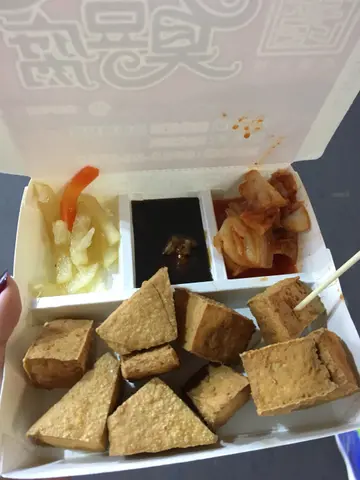 知名的逢甲商圈便當街裡這家解饞小舖-逢甲紅茶臭豆腐艾米每次經過總是見到攤位前大排長龍,天氣熱..肥媽艾米很是沒耐心站在人群裡排隊今天等大小姐來會合的空檔,終於有幸一解嘴饞啦! 臭豆腐當然吃不少,紅茶臭豆腐,艾米不只沒吃過更加沒聽過一近攤前好鼻師已經聞到不同之處了,沒有歪果人害怕的臭腐味,不那麼臭反而有點清香喔艾米愛聊天,等候時問了這紅茶臭豆腐真的很不同先以傳統古法不添加化學藥劑製成臭豆腐,再洗去滷水後再加入獨家配方也就是採用頂級伯爵紅茶所製成的滷水,再在箱中低溫發酵而成比一般臭豆腐多了幾道工序店主說他用了一年的時間研發創作出這道融合新時代新口味的創意商品吃起來會有香香紅茶味,真是太令人期待了啦! 攤位不大,客人不斷上門,炸臭豆腐的手沒停過 情商老闆讓艾米瞧瞧泡著頂級伯爵紅茶滷水的臭豆腐沒有綠綠令人作嘔的發酵物,不會臭蠻清香傳統臭豆腐原料上蒼蠅揮之不去的畫面,在香噴噴臭豆腐入口的同時,只能安慰自己- 每家都這樣!!來到這裡才知道~才不是呢,人家這攤乾淨又不臭耶!除了主角夏夏叫外,配菜配角也很搶戲喔 解饞小舖自製的[魔鬼饞辣醬] 就是要你辣得過癮,辣到一邉噴火一邊吃停不了[醃蘿蔔] 以梅子及天然米醋特調而成,酸甜開胃解油膩,單吃也好好吃喔[韓式泡菜] 水果梅子、頂級韓式辣粉拌上高山高麗菜製成,冬天會換成山東大白菜以當令盛產蔬菜作調整[新鮮大蒜末] 純釀醬油、麻油、香油、中藥材配出的獨門醬汁加上蒜末,這沾醬光是想像就要令人流口水囉! 現炸紅茶臭豆腐一大盤地由型男帥哥送到你面前請試吃呢老闆真大方! 金架午告乓ㄟ啦~~ 雖然排隊人潮沒少過,但炸臭豆腐的動作也很快其實無需久等就能到手,出貨速度可快的呢! 不一會兒艾米的外帶好囉!三角型紅茶臭豆腐約莫10多塊有(大小姐好像有偷兔了幾塊,太香了咩 )便當盒裡還有[醃蘿萄]、[特調辣醬]、[韓式泡菜],要吃原味or沾醬配料,任君喜好配搭 紅茶臭豆腐切成三角狀,方便一口一個吃不停 大小姐說.. 媽~這臭豆腐不臭耶!小姐~這是因為店家搞剛地用頂級伯爵紅茶作的滷汁泡的怕太濃郁臭豆腐味的人有口福囉!炸功真是了得,臭豆腐不會硬皮也不會過厚,吃起來不會硬口到刮嘴巴內膜重點是不含油喔~乾乾爽爽der (好像某商品廣告詞 )臭豆腐內部很滑嫩喔~外酥內嫩爆汁的剖面,是不是迷史人啦啦啦 組合款更好吃,酸酸甜甜帶著梅子甘味,解了臭豆腐的油膩感,小辣好開胃! 臭豆腐因為油炸,吃起來可能紅茶香變得不太明顯,口感卻比一般臭豆腐來得更為酥脆天然豆香愈嚼愈有滋味,艾米超愛這味韓味泡菜,酸甜加上辣脆,泡菜多一點吃起來味道更富層次喔! 逛了一圈逢甲,回程時大食怪母女二人又包了一盒邊走邊粗 人氣店家真的不寂寞,隨時都是排著長長隊伍狀,想吃就要乖乖排.. 【解饞小舖-逢甲紅茶臭豆腐】 04-23174545 0988234735台中市西屯區逢甲路20巷5號 慶合街二店台中市西屯區文華路12號查看更多