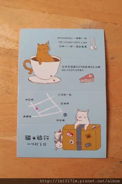 貓旅行咖啡輕食館 (台中) 網址: https://s.openrice.com/cHRSmW2SjK100 地址: 台中西區林森路26-6號 電話: +886 0422290589