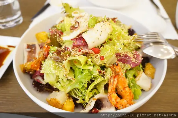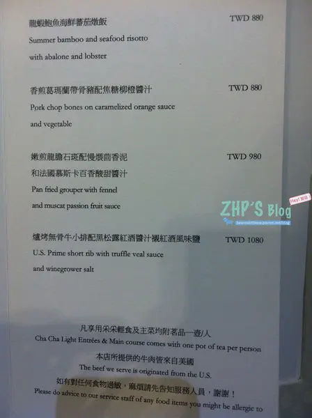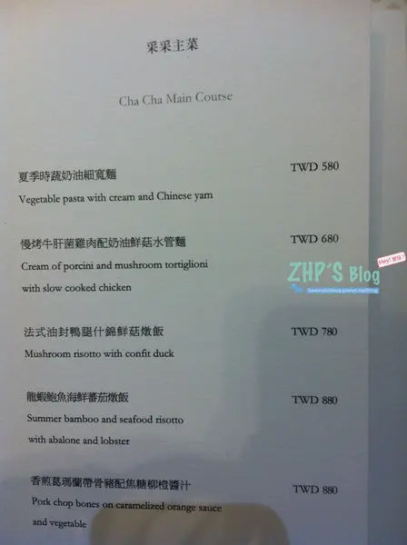采采食茶文化| Cha Cha Thé台中大遠百2樓~ 上次經過還以為只有賣喜餅跟茶/點心。。。沒想到居然有供餐耶!!!朋友強力推薦說很好吃~~~ 今天特地帶我來吃耶。。。他們家的喜餅感覺很不錯耶!!!盒子好漂亮哦~~~用餐區小小的~ 感覺很清幽哦~~~ 真的是品茶的地方!!!提供的餐點沒有很多~ 但每一道都蠻好吃的~~~只是價位也不低就是了!!!義大利麵/燉飯/海鮮/排餐都有!!!!輕食 — 三明治/漢堡也有~ 。還有午茶可以選。點餐都有附茶哦~~~大家可以任選~ 整個環境真的很好~ 而且服務人員也很NICE~~~ 麵包好好吃~而且可以免費加點!!!我喜歡圓形的~ 配上欖橄油跟醋(不知道是巴沙米可還是紅酒醋)但我好喜歡~~~每日精選紅茶—斯里蘭卡 380元茶不會澀耶~ 而且好大壺哦~~~ 靜語 <德國花果茶> 380元黑松露牛肉起司鵝肝漢堡 NT$880元朋友一邊吃一邊讚嘆》雖然這麼貴~但完全值得~~~哇哈哈附薯條跟小農野菜沙拉。薯條很好吃耶~~~很真材實料。朋友說連沙拉都非常好吃。有沒有這麼誇張。。薄荷檸香龍蝦鮮味青蔥麵 NT$980元。整個半隻龍蝦就在眼前耶~~~ 服務人員說他們每道菜上的花草都是有機可以食用的。。。焗烤辣炒紅味噌雞肉筆尖麵 NT$780這道菜的味道很韓式~~~ 才剛說完就吃到年糕耶~~~ 口味甜甜辣辣的~ 而且雞肉好嫩哦~~~ 我非常喜歡這道菜。很重口味。但又不會不舒服。養生香草紫米塔甜點也好好吃耶~~~~~而且擺盤好美哦~~~上面居然還有金箔。。。。不會很甜膩。外皮吃起來很酥,裡面的紫米很Q很黏。雙重口感好好吃。。。茶喝不完,居然還可以外帶~~~~~ 總之~謝謝我的好朋友來探班。也謝謝他的老公帶我們去吃大餐!!!!! 我們都好幸福。。。。。 …查看更多