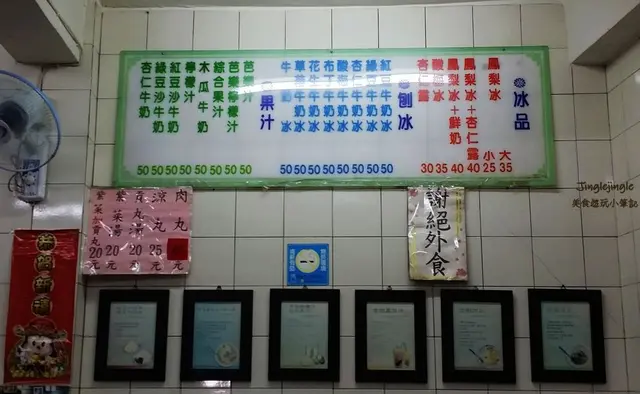 地址:台中市豐原區中正路167巷2-3號(廟東夜市內)電話:04-25243985從后豐鐵馬道的鐵腿行程結束後直奔廟東夜市廟東夜市假日真的還不少人,不過天氣變冷了所以就算夜市很多人也不會太不舒服XD(結果我們第一間就來吃冰XD我們是假日來的,因為人很多,所以在入口初先抽了菱角酥和蝦仁肉圓的號碼牌再往裡面走先來金樹冰果室~吃完剛好回去吃菱角酥和蝦仁肉圓~剛好沒過號!! 金樹冰果室是實實在在的老店,假日也是很多人,不過內用其實翻桌率很高,不需要等太久也滿多人外帶的就是了菜單在牆上,直接跟老闆點就好 鳳梨冰(小25元 大35元) 夏天喝一定很消暑,雖然天氣轉涼但我依然覺得很棒XD整杯不會太甜,鳳梨是有熬過的,果肉少了酸味多的香甜連韓國朋友多說好喝喔~跟之前在沙鹿喝的鳳梨冰不同的是這裡的吃到的鳳梨果肉很大塊~台中沙鹿-蘇氏家大蛋燒+阿義古早味鳳梨冰。像披薩又像蛋餅,顛覆想像的大蛋燒,口感厚實無油膩,配上鳳梨冰好消暑!阿義古早味鳳梨冰的話像是有用果汁機打過的感覺,比較細碎,可以直接用喝的~涼丸(25元)顧名思義就是涼的肉丸我本身不太喜歡吃很燙的東西,涼丸吃起來完全是常溫外皮Q軟,醬料很好吃,小黃瓜也有解膩的效果,吃起來更顯清爽裡面的肉也是涼的,吃起來滿扎實感的,我個人挺喜歡的 鳳梨冰+杏仁露(40元)其實我不太能吃杏仁的,跟許多人一樣害怕那股杏仁味不過第一次吃了我朋友點的這個之後發現也太好吃了吧~~~所以第二次我自己點一碗XDD杏仁露加在鳳梨冰裡面整個杏仁味變得很淡很淡剩下杏仁淡淡的甜味,吃的到一點杏仁,但不是會讓我感到害怕的那種杏仁味味道後來我吃到一半突然覺得他的杏仁露口感很像"菜燕",就是洋菜凍的感覺總之這道冰品應該是大多數的人都可以接受的~不管你吃不吃杏仁~來廟東夜市千萬別錯過這一味啊~!!!推薦給大家…查看更多