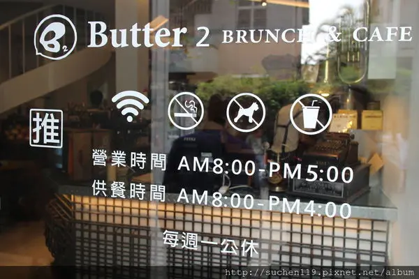 早午餐可是近幾年各家餐廳的主力阿~~台灣各地幾乎都是戰區來著~~這次回台中跟姐妹的聚會~~首選更是早午餐餐廳早午餐的優點就是可以睡飽之後~吃一餐抵兩餐(不過這樣很不健康阿~~XD)Butter 2 巴特廚房2店~~竟然是彰化來開的分店~~彰化是小吃聚集地~~~~沒想到早午餐也是可以紅到台中來~連美食節目食尚玩家都來踩點過...真是太厲害了~~而且選在台中餐廳集中地~~~美術館特區附近~位在五權西四街巷弄內~~不訂位真的吃不到~~這條巷弄內很多特色餐廳~~美食怎麼都吃不完阿Better 2巴特廚房的招牌也很有自己特色~~門口的小角落有候位區~~這~~好擠啊!!一樓的吧台區~~一進來就有工業風格裝潢的感覺~~吧台下面的裝置像是粗的鋼筋鐵條在下面編織著~~吧台上有著一台復古電視~~還撥放著黑白版本的唐老鴨~~上面那夢幻迪士尼城堡~~可是巧克力做的~~真是厲害旁邊還有一台好復古的咖啡機~~看起來帶金屬感~~一樓的用餐空間略顯壅擠~~位置與位置之間~~靠的滿近的Butter 2店的室內滿小的~~或許是物盡其用~~要把最大的空間用到最完善~~所以能擠就擠~~這裡有二樓的用餐空間~~旋轉式樓梯~~~~二樓往一樓俯瞰下去的迴轉式樓梯~~~滿陡的!!僅人一人上下樓梯~~無法兩人同時~~如果有帶小孩來可要小心~~還有裙下風光會一目了然阿~~~我們被安排在二樓空間~二樓的用餐空間較為舒適~~~訂位桌上的小鐵牌~~~以早午餐餐廳來說~~BUTTER巴特廚房的價位還算平價~~約莫170~270元左右(不用加收一成服務費)早午餐有附紅茶、美式咖啡、奶茶擇一~~~早午餐的飲料~美式咖啡~~非常迷你~~大概兩口就沒了~~這這~~~有點太小了吧~~~讓我喝得很不過癮阿~~~‵餐點到~~~巴特廚房的套餐~~用的是圓的鐵盤..裝盛著~~~顏色很豐富~~擺盤有設計過~~~黃綠紅黑~~色彩繽紛~~我點的是純黑熔岩系列的經典肉排NT220~~挖~~黑漢堡!!好特別阿~~每份套餐都會附上一小碗的濃湯~~也是走精緻路線~~恩~~很小碗~~湯品表現得中規中矩。。並沒有驚艷。。沙拉林上的醬汁是油醋醬~~酸甜低卡~這裡的黑系列~~外表有讓我驚豔~~不僅漢堡皮是竹炭黑色的連餡料中的起士~也是黑抹抹的~~好酷阿~~吃起來不失起士味~~還不賴~~~姐妹點的~~手作堡類系列的~~椒鹽雞柳堡~~NT180麵包可以選擇A漢堡、B軟法、C帕尼尼、D貝果~~還滿貼心的主食可以選擇~朋友點的是軟法~~感覺不錯吃~~我沒有品嘗到就不描述口感了~~只是這裏的份量~我覺得女生吃可能滿剛好的男孩們來~~應該會像我一樣吃不飽阿~~大食怪大食怪。。。吃飽之餘來看一下二樓用餐空間~~二樓空間我還滿喜歡的~~店家很會利用空間~~在一樓與二樓的迴轉樓梯中間~~放上衣些雜誌~~可以供客人使用~~不過這裏有用餐限時的規定~聊天時間都不夠了~~哪來時間看雜誌!!巴特廚房真的會趕人~假日限時1。5小時。。我們聊天聊一半店家就說我們時間到了~~如果想要話家常的朋友~~這裏可就無法聊天聊的很盡興啦~~不過假日有限時相對也是好的~~可以讓在外面等候坐位的客人可以快快入坐用餐~~巴特廚房的水也是自助式~~杯子在櫃子下面~~自取!!我拿到杯子我找不到水壺阿~~在牆角有一個這個~~像是滴管漏斗的設計~好特別阿這是白開水耶~~第一次見過這玩意~~真的很有特色~~二樓還有一個小小包廂區~~真是很會設計阿~~這小空間約莫可以容納8人左右~~目測XD不過包廂空間有點小~~但可以聊天不會吵到別人~~二樓整體空間~~店家的椅子很特別是用紅酒木箱。。。牆上掛著許多腳踏車鋁圈~~很有特色啊!!這裏也有許多很復古的骨董~~喜歡這類東西的朋友~這裏你們應該會喜歡!! 【店名】巴特二店Butter Brunch&Cafe【地址】台中市西區五權西四街13巷10號【電話】 (04)2378-3007【營業時間】 AM9:00~PM21:00(供餐到20:00)周一公休 (假日限時1.5小時)【店家FB】https://www.facebook.com/Butter2brunch…查看更多