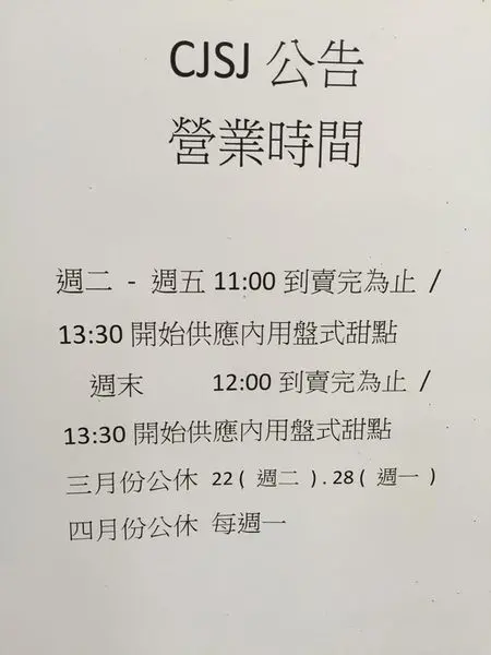 打從CJSJ開幕,小綿羊就一直很想來拜訪,但礙於實在不想跟芸芸眾生爭先恐後,就一直把這個想法擱到現在。前陣子替代役時期,退伍的學長特別帶了CJSJ的甜點回來探班,原以為此生已無憾(誇張XD)沒想到進入職場後,身邊會出現一個CJSJ的腦粉,於是上周末就這麼被揪來內用啦~~CJSJ的店面不大,簡約的黑白色調頗有質感,意外的發現人潮似乎不若預期,而且大多數的客人似乎都選擇外帶,所以幾乎沒什麼等待就入座啦(灑花)門口的告示牌詳細說明內用與外帶的規則,內用低消每人一杯飲料或一個小蛋糕,用餐時間限制90分鐘,不額外收取服務費。靠近門口的這一櫃是手工巧克力,迷幻的色彩與鏡面的反光,像極了一顆顆在天空運轉的星球。冷藏櫃裡十款法式甜點爭奇鬥艷著,可是到處都找不著小綿羊心心念念的青蛙,詢問之下才發現已經下檔QAQ結果過沒幾天,小綿羊在店家的粉絲專頁看到他們推出一款粉紅色的青蛙,為什麼要這麼殘忍的對待我(大哭)小綿羊在替代役時期嚐過巴黎布列斯特 (NT. 185)和PINK APPLE TART (NT. 175),兩款都是會誘發密集恐懼症發作的甜點XD巴黎布列斯特底部是層次分明帶點彈性的泡芙塔皮,上頭則以榛果為主題填入焦糖醬,並以法式奶油醬做裝飾,堅果香氣迷人。PINK APPLE TART將蘋果雕刻成年輪狀,並且使用甜菜根染成漂亮的粉紅色,吃起來非常juicy,酸酸甜甜的味道就像初戀一般XD一樓與三樓是座位區,二樓則可以透過透明玻璃看見師傅在製作甜點的過程。不光是甜點,店家對於餐具的選用也是相當講究,整個超有質感啊!鄉下來的小綿羊不懂這個水瓶的設計是可以直接倒水,就把上面的鐵蓋拔了起來,鬧了一個笑話XD這次和朋友一共嚐了三款甜點,分別是?(NT. 185)、BLACK CHERRY (NT. 200)和PINK MAGIC (NT. 200)。這款?完全沒有任何的簡介,像是一個提問,又像是一個驚喜。覆在最外層的白色膏狀物是香草口味,口感介於慕斯和果凍之間,中間則是由一層超級酸(會皺眉的那種)的果凍和千層派皮組合。整個口感與味道算是相當有層次,但小綿羊還是覺得那股酸味衝突了些,或許稍微調降酸度味道會更加平衡。BLACK CHERRY是一款以巧克力為主題的甜點,櫻桃皮的部分採用可可脆餅與巧克力鏡面製成,櫻桃肉則是70%的甘納許,而櫻桃籽則採用覆盆子與黑櫻桃調和成果泥。這款在小綿羊的心中的排名算是敬陪末座,巧克力的味道有點太heavy,而且鏡面淋醬的味道有一種說不上來的不討喜。小綿羊覺得PINK MAGIC的靈感發想應該來自於魔術師的帽子,還特別用玫瑰慕斯做出兔子的造型。主體是帶著高雅玫瑰香氣的慕斯蛋糕,中間的三層結構分別是覆盆子果泥、栗子奶油醬和栗子蛋糕,可以想像成是包著一個小型的蒙布朗XD小綿羊一直覺得既然稱之為甜點,「甜」這個要素就非常重要,這款蛋糕的酸甜度就比?好一些。不論是造型或是味道,PINK MAGIC都是小綿羊心目中的No. 1!如果想喝點什麼,店家有提供咖啡、茶飲和氣泡飲可以選擇。【分項評比】美味度:★★★★☆CP值:★★★★用餐氣氛:★★★★★服務態度:★★★☆小結:雖然小綿羊提了一些不合胃口的地方,但飲食本來就是一個非常主觀而且直接的感受。CJSJ是一家整體度很高的甜點店,空間氛圍與餐具選用讓人體驗到法式的優雅,精緻的造型與細膩的味道則展現了法式的極致。…查看更多