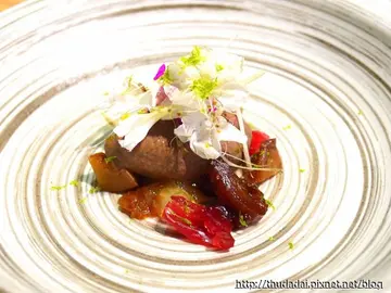 英雄餐廳是此次回到台中最期待的行程,也果然沒有失望,蕭淳元主廚來自南投,有台北侯布雄與日本BVLGARI餐廳、小笠原伯爵官邸等經歷,林凱維主廚則曾待過德朗、亞都麗緻巴黎廳,後來則是台中中山招待所的主廚,飯後閒聊時有提到他們過去是涉獵中餐的,彼此還詢問了一下有沒有什麼不錯的餐廳推薦。 英雄採用的是FB或Line訂位,英雄套餐(2,450+10%)需先付500元訂金,並只能現金付款,六點進場提早到店了,很日式的門口,坐下來之後觀察了一下,特別詢問他們牆上的圖騰是什麼?外場說是吉娃娃,大概是吉祥物之類,還蠻特別的。開胃一口小點是豬肉與薄片麵包,簡單的點心但入口就是一種感覺,這間店的調味是好吃的,醬汁的味道搭配就有所預感,再來是當日海草麵包,使用了檸檬、橄欖油、鹽,內裡稍偏濕潤,但整體不壞。因為選擇了juice pairing,一共會有三杯特製果汁來做搭配,頭一杯是西瓜底(以事先處理好的封袋西瓜汁),加上香草、洛神花冰球、跳跳糖,洛神花冰球逐漸融化時,會使溫度與風味慢慢改變,蠻有趣的飲品。正式第一道是清爽的冷盤,小黃瓜冰沙與宜蘭胭脂蝦為底,一旁的番茄冷湯香氣十分清新,倒入沖刷紫蘇粉之後,除了清甜與沁涼感,底部的蝦高湯凍帶來了微鹹的濃郁味道,使整體在滋味上更有變化,胭脂蝦本身也是相當好吃的。英雄花園沙拉是招牌,裡頭有許多自家栽種的食用花卉,色彩繽紛,上頭是梅果慕斯,當日的主題是西瓜,加入糖漬西瓜乾與野薑花苞、洛神花等,這不僅是好看而已,味道也甚有層次,印象中除了芝麻葉的苦、還有紫蘇香味,甜酸鹹苦皆具,尤其加入了跳跳糖在口中喀拉喀拉響,既有意思又好吃。第二杯果汁是香瓜汁、百香果、並加入蝶豆花,其實喝起來不太像一般熟知的香瓜。第三道絲瓜麵疙瘩與海鮮嗲,發想來自於絲瓜麵線,上層覆蓋了絲瓜慕斯與九層塔sauce,帶白醬香味,麵疙瘩則揉入了馬鈴薯的義式做法,仍保留了一些Q,鹹濃調味異常的好,裡頭的煙燻赤嘴蛤似乎還多了些料酒香味,整體味道感受上更像是中西融合,海鮮嗲也很好吃,夏季的丁香魚、角瓜、軟絲、櫻花蝦,鮮味滿滿。第四道雲林冬瓜鰻魚,莧菜、筍片、黃色的漬紅棗、紅蘿蔔枸杞醬,與金華火腿和老母雞熬製的濃稠湯汁,鰻魚皮很酥脆,很清爽的風味,整體就是單純不錯吃,倒沒有特別的感想抒發。最後一杯的佐餐果汁是芭樂汁,裡頭加入綠茶粉和紅烏龍茶葉打碎發酵漬過的荔枝,在單純的芭樂汁裡多了些不同的元素在內,喜歡這個勝過第二杯。接下來進入主菜時間,雲林薩索雞與三味蒜頭,放了些茭白筍片,這一道源自於台灣常見的蒜頭雞,先飲用附上的一小杯蒜頭雞湯(還ok),所謂三味蒜頭,外場介紹說是發酵的蒜泥、溫和的蒜泥、黑蒜泥,不禁令人發笑,薩索雞分為雞腿、雞翅、雞胗三部位,雞腿很美味,除了薩索雞本身食材關係,在煎製與調味的處理上很下功夫,雞翅包了帶有雞湯風味的糯米飯,雞胗則柔嫩,裡頭我最喜歡配發酵的蒜泥,那股蒜香味沾上皮脆多汁的腿肉,實在相得益彰。最後一道是醬燒牛筋飯與炙燒牛臉頰,牛臉頰肉個人認為滋味屬意料之中,放了些青辣椒與香菜苗來搭佐,主要是牛筋飯太好吃了,飯糰棒子酥脆,小塊的牛筋則半化到飯中,十分濃郁。甜點是巧克力慕斯與糖漬水果,我覺得整體還行,這裡很充分使用了醃漬、風乾、發酵等手法處理食材。飯後招待小甜食,蜜三刀和花生酥,蜜三刀是徐州小吃,也是清朝宮廷御點,這邊使用了麥芽糖,口感倒有幾分像"潤"掉的餅乾,只是較為甜而鬆綿,花生酥便是核桃酥轉為花生味,台灣人很熟悉的味道,吃著甜點再喝杯紅烏龍,蕭主廚說這紅烏龍茶很特別,聞起來有一股珍珠奶茶的香味,喝下去卻沒有,的確像是這麼一回事,而且甘醇不澀的風味令人忍不住再續兩杯。很滿足的一餐,後來與蕭主廚閒聊了一陣子,提到中西元素融合的餐館,如態芮、或桃園的樂福利,原來Hero與他們彼此也是認識的,主廚也向我推薦了台中的JL Studio和鳥苑,有機會再上門試試。…查看更多