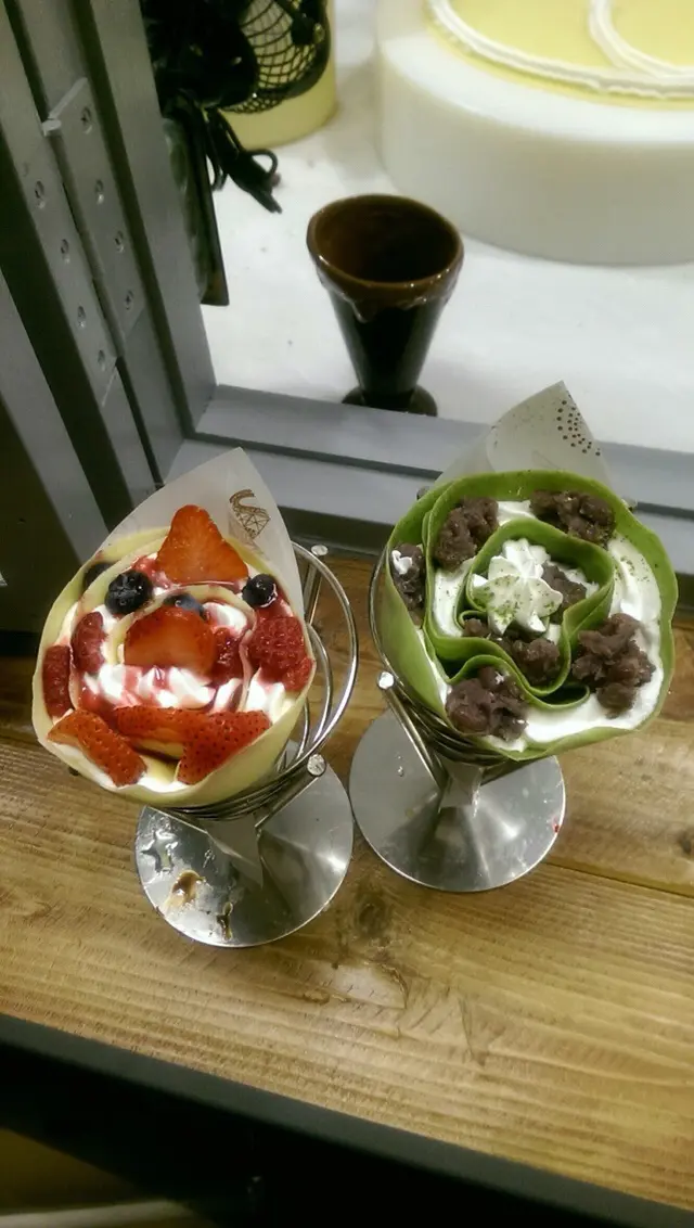 前一天晚上出來散步買宵夜時,路過看到好可愛的這間店!!姊妹們馬上盤算著今天行程還有沒有時間過來吃個可麗餅散散步~一開始是被這大大的可愛插畫看板給吸引過來~走進才發現原來是可愛的可麗餅店!!樓上還有插畫展耶!!巷弄裡還有一些可愛的小店和展演空間~不過不知為何大多沒開....以外賣為主的散步小食,並沒有內用的空間。在台中的艷陽下,這樣露天的座位完食也是挺刻苦的~比較適合再晚一點、再涼一點,散散步過來買個可麗餅當下午茶的愜意。看 小如 誤打誤撞跑去 LAbbito Cafe ,我也好想去喔!! Menu 就是這一張 很可愛的以動物代表不同口味的可麗餅皮!原味-小兔子、咖啡-小鹿、抹茶-青蛙、巧克力-小熊,還有獨創的茶香餅皮。每一種餅皮都各有搭配的不同口味~想要全部吃完一輪,除了胃口要夠大、口袋也要夠深!兩個人吃一份的話,就還OK!飲料的部分,就是濃縮果漿+雪碧的感覺,熱呼呼的天氣喝來是有消暑的感覺~但也沒很驚豔或必喝這樣~ 還是覺得喝水最解渴呀! 草莓香蕉小兔子 NT$135鮮奶油不會很膩、香蕉很香~草莓是進口的~私心還是最愛臺灣草莓~淋上巧克力醬,搭配軟軟的可麗餅餅皮,其實還蠻好吃的!即使天氣很熱、體感溫度很高,也不會覺得很膩口!從小窗戶可以看到店員現場製作可麗餅的過程~ 綜合水果+冰淇淋小鹿 NT$150每一款可麗餅都可以+15元加購一球冰淇淋,我們點的這款本來就是有附冰淇淋的唷!價格當然也是+15元囉!選擇的冰淇淋口味是北海道牛奶。抹茶控我本來想點 紅豆麻糬冰淇淋青蛙 ~ 對!就是因為很熱、太熱,不管什麼口味我都想+冰淇淋!但其實過來之前,我們才吃過 三星丸-將軍的眼淚 ~即使我對抹茶是真心摯愛~ 但....才吃過 三星丸 再來吃 LAbbito Tokyo crepe 的抹茶....似乎非常不公平呀!!因為有了冰淇淋,所以可麗餅的捲法也有所不同喔!!一口咬下有 罐頭水蜜桃、奇異果、百香果 ,加上 牛奶冰淇淋 ~嗯~清爽好吃!爬上了二樓,想說來看著插畫展陶冶一下性情~ 竟 然 沒 開 ! ! 至於為什麼沒開....我只能學狗狗...不知道~ ---- * LAbbito Tokyo crepe * ---- 04-2321-1122 台中市西區美村路一段117巷21號 創作者介紹 almpa Almpa's Blog…查看更多