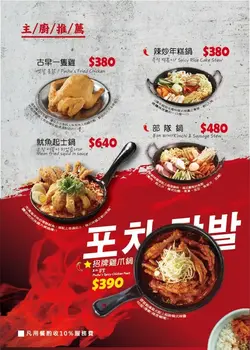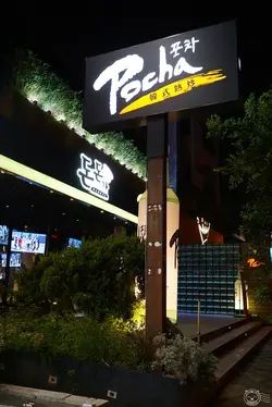 這家韓國路邊攤熱炒料理,連韓國人都推薦!Pocha 韓式熱炒 포차位於秋紅谷對面,無論是外觀或用餐空間都放鬆吸引人,韓國總監掌控道地的韓國味,香辣夠勁,無論是超下酒的魷魚起司鍋、韓式炸雞,或堆高高的燒酒巨塔,都讓人很嗨,重口味的享受,愛韓式料理的捧由千萬別放過喔!✩✩✩✩✩✩✩✩✩✩✩✩✩✩✩✩✩✩✩✩✩✩✩✩✩✩✩✩✩✩秋紅谷對面,全台唯一韓式熱炒大家喜歡看韓劇嗎?老實說,星羽不算特別迷韓劇,不過每當半夜在劇中看到主角大啖美食,都會覺得好餓好想吃喔~印象中最深是千頌伊每次豪邁啃炸雞吃啤酒,我都餓到快暴走,好想叫保安!◢▆▅▄▃崩╰(〒皿〒)╯潰▃▄▅▇◣今天星羽要分享一間韓國人也喜歡的韓式料理!Pocha 韓式熱炒 포차位於秋紅谷對面,統聯朝馬站旁邊,算是美食一級戰區!秋紅谷有停車場,不過好不好停就不好說了~韓國朋友推薦,韓式路邊攤邪惡料理!Pocha在韓文是布帳馬車的意思,就是韓國傳統的路邊攤拉,老闆特別赴韓國取經,帶回地道的路邊攤文化,再升級!此外,為了在符合台灣人口味前提上,提供最接近韓國本土滋味的料理,老闆特別聘請韓國總監研發及調整口味,有木有很用心!?從外觀就非常亮眼,走過路過很不容易錯過那種,變幻的燈光帶點迷幻和魔幻感,好想走進去吃看看唷~~XD用餐氣氛放鬆舒服,超級適合朋友聚餐一踏進店內,內心的小鹿又不小心噗騰了一下,這環境我好喜歡!!酒瓶裡塞LEO燈的流線型燈光,讓店內環境特別卻不會煽情,螢幕跟喇叭中傳出讓人放鬆的音樂,整體環境非常輕鬆,客人聊天談笑的聲音此起彼落,卻不會讓人覺得吵雜或難受。燈光昏黃卻又明亮,空間也挺寬敞,我只能說,Pocha的裝潢完全打中我的心啦!ヽ(́◕◞౪◟◕‵)ノ現場無論是全家大小一起來的親子客,或一大群朋友聚餐,或三五好友小酌通通有,臉上漾著滿足的笑容,嘿嘿~~讓人難以忽略的是旁邊講韓文的客人,服務人員說,每天都至少會有2-3組的韓國客人來用餐,說跟家鄉的口味很像,齁甲齁甲~ヾ(*´∀ ˋ*)ノPocha 韓式熱炒的菜單及價目表餐點特色以韓式路邊攤熱炒菜色為主,無論是主餐、熱炒或酒水飲料選擇都很多。價格屬中價位,除了單點也有雙人或四人套餐可選擇,套餐平均一人約5~600元左右,若單點再加酒可能會再高一些,不過餐點分量都頗大,多人一起分享也沒問題唷~菜單很貼心的都附有照片跟說明,讓客人更容易了解,但每一種看起來都太好吃了吧!這叫有選擇困難症的我怎麼辦啊! (΄◞ิ౪◟ิ‵)店家自製四種韓式小菜,還可免費續一次韓國料理就是要有好多種小菜才過癮,對吧!(σ゚∀゚)σ..:*☆Pocha提供4種自製小菜,泡菜不鹹有辣很夠味,四種一個套組還可以免費續一次,若續一次還不夠,加購一組也只要99元喔~燒酒巨塔 290元一看到這杯燒酒巨塔,星羽整個大傻眼,這是101等級的調酒吧!(((゚Д゚;)))這款調酒是店家發明的獨家款,整瓶韓國燒酒倒頭栽在胖胖杯中,杯裡是芒果汁+柳橙汁打成的冰沙,光視覺效果就滿分,燒酒還有9種口味可以自由選擇,太膩害了拉!炸醬麵 180元有看家庭系列韓劇的都知道,黑色的炸醬麵簡直就是國民美食阿!韓式炸醬麵使用特別的黑豆醬調味,克哥自從之前看爸爸~我們去哪裡?吃過浣熊炸醬麵就愛上,一看到有韓式炸醬麵就吵著要點來吃~XD韓國家庭料理代表,不可錯過韓式炸醬麵看似平凡的炸醬麵,真的是超級好吃的耶,吃到我們欲罷不能!>@@<特別選用韓國進口的麵條及醬料調製,麵條雖細但口感很優,軟硬剛好,炸醬鹹淡剛好,有味不過鹹,再加入清爽脆口的黃瓜絲,好爽口好好吃!魷魚起司鍋 640元看起來價格不斐的魷魚起司鍋,一上桌就讓星羽哇哇哇了三聲~(☉д⊙)剛剛的調酒是101等級,這鍋魷魚簡直是文心公園的犯規寬廣,裹粉酥炸的大大隻魷魚,突出在韓式辣醬和起司調合的起司鍋中,光看就讓人口水流滿地拉~大大隻魷魚外脆內彈牙,沾著辣醬吃一級棒處理好魷魚後,將濃郁的起司鍋攪拌均勻,你以為這鍋裡只有辣醬+起司嗎?NONONO~還有蔬菜,跟韓國進口的魚板跟年糕,豐富的咧!看起來紅通通的起司鍋,事實上也真的很辣(飆汗辣的很爽快很夠味,卻很優秀的不會死鹹,軟嫩的韓國魚板吃的到魚漿的鮮美,久煮不爛的韓國年糕超級彈牙,讓我邊辣到猛吐舌頭邊猛點頭~魷魚的炸皮故意略厚,脆硬的口感克哥有愛,沾著起司鍋一起吃,脆、彈、辣、鮮的組合,很重口味但很涮嘴,再來一塊!(´,,•ω•,,)♡韓式炸雞(紅醬) 300元千頌伊最愛的韓式炸雞這裡也有!哇哈哈~*ଘ(੭*ˊᵕˋ)੭* ੈ✩‧₊˚還有4種口味可以選擇,原味韓國椒鹽、紅醬、黑醬、蜂蜜芥茉醬,依照不同口味有不同價格。我們選擇紅醬口味,師傅在雞塊炸到酥酥脆脆後,趁熱直接拌炒韓國辣醬,這裡面可是直接給半隻雞喔,份量很多!香辣夠味韓式炸雞,啤酒好朋友師傅熱炒的功力很強大,裹滿亮晶晶紅色辣醬的炸雞沒有軟爛,還保有一點炸皮的脆感,雞肉也是有口感的,雞胸的部分有絲絲口感,雞腿部分比較滑嫩。重點是有辣很辣但不死鹹,超級無敵適合下啤酒的辣!>W<韓式起司蒸蛋 200元白白胖胖膨膨的起司蒸蛋裝在燒鍋裡,超級卡哇伊,而且很好吃,大人小孩都會喜歡,推薦必點窩喔喔喔!⁽⁽٩(๑˃̶͈̀ ᗨ ˂̶͈́)۶⁾⁾鬆軟綿密韓式蒸蛋,牽絲起司好過癮用高湯蒸成的韓式蒸蛋,入口是蛋糕的軟綿感,跟起司一起化開在嘴裡,起司的濃郁感跟蛋的香氣一起交織,記得趁熱吃,