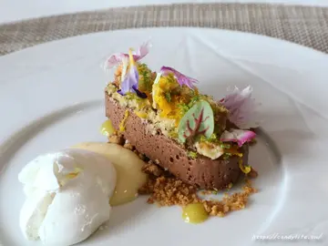 最近在永春東路上發現了這間非常低調的Revivre 法式餐廳,主廚與團隊將旅歐留法與星級餐廳工作經驗帶回家鄉,兼具創意與美味,不追求奢華浮誇,而是藉著溫婉細膩的烹飪手法,將台灣在地食材與法式料理融合糖糖很喜歡Revivre 法式餐廳的用餐環境,空間舒適寬敞,沒有過多華麗裝潢,低調大方又不失質感Revivre 法式餐廳的價位分880元、1150元、2280元三種價位,也有提供350元的兒童餐(需事先預約)宛如藝術品的開胃小點,主廚將義式經典的Caprese Salad,詮釋成小版的開胃小點,將羅勒葉製作成羅勒果凍,配上兩種不同的番茄,接著削上水牛起司薄片來點綴,最後淋上些許橄欖油入口瀰漫著羅勒清香交織著迷人的cheese鹹香,搭配著番茄的酸甜,層次豐富,爽口又開胃法式小圓麵包佐自製鯷魚奶油,麵包現烤出來,剝開香氣四溢,口感外脆內Q,單吃就另人著迷自製鯷魚奶油,奶油中多了鯷魚的香氣,塗抹在麵包上滋味更迷人,單吃或抹奶油都好吃南瓜濃湯,剛開始以為這道又是前菜,沒想到竟然是湯品,底下是炸杏鮑菇,上頭搭配南瓜凍,佐上南瓜塊及香草奶泡,還沒淋湯前可以清楚看到裡頭的配料淋上熱呼呼的南瓜濃湯,湯頭超濃郁,喝的到南瓜的香甜,同時還能品嘗到迷人的奶香味,甘甜好喝,裡頭的配料也很美味,單純一碗濃湯不僅能嚐到南瓜不同的吃法,就連配料也超特別,是糖糖目前喝過最特別,層次又豐富的南瓜濃湯前菜,將雞肉低溫烹調,將外皮煎至金黃香脆,雖然是雞胸肉,肉質卻不乾澀,不僅保留了雞肉的香氣,吃起來也超juicy佐上白巧克力醬,多了巧克力的香氣,卻不帶甜膩,如此創意的搭配,真的是太讓人驚異啦當日鮮魚/烤根蔬/煙燻茄子泥 1150元今天搭配的鮮魚是海鱸魚,底下搭配自製的煙燻茄子泥,上頭刨上茄子皮再搭配豬骨醬汁法式羊排/焗山羊乳酪/羊骨肉汁 2280元羊排嫩煎五分熟,依然保留著羊本身的鮮美與香氣,肉質帶著粉嫩色澤,軟嫩中帶微微嚼勁,讓人越嚼越香,不一會兒就被糖糖給啃個精光啦XD旁邊塊原以為是菇類,沒想到竟然是羊菲力,上頭搭配羊乳酪,肉質比剛剛的羊排更軟嫩更多汁是說大家有沒有發現羊排旁邊微透明的裝飾,這個竟然是用馬鈴薯製作而成的,抹上鹽吃起來鹹鹹脆脆的,好涮嘴阿甜點起司蛋糕上頭搭配栗子泥,旁邊佐上莓果醬及蛋白餅,起司蛋糕濕潤綿密,搭配栗子泥,香甜不膩另一款甜點黑巧克力更深得糖糖,濕潤滑順的黑巧克力慕斯佐上濃香焦糖核桃,入口時慕斯融化於嘴裡,苦甜滋味立刻在嘴裡蔓延開來,與焦糖核桃搭配柔和,加上橙果清香,幸福滋味令人難以忘懷飲品拿鐵順口好喝,還有美美的拉花Revivre法式餐廳環境優雅舒適,餐點更是道道令人驚豔,平常日沒有接待小朋友,不過每週三、日是Revivre法式餐廳的親子日,可以帶著寶貝們來,同時也推出了兒童套餐,讓寶貝能簡單品嚐法式餐點,了解不同的用餐文化,提醒大家若訂有兒童套餐需求,記得事先預約唷…查看更多