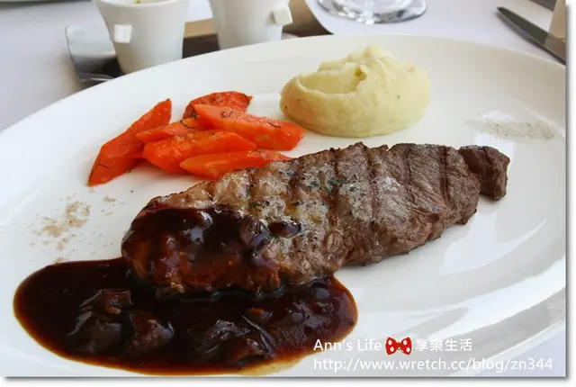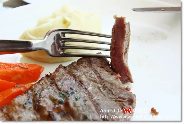 套餐的沙朗配菜無法選擇較為簡單,蒜味洋芋泥相當綿密完全吃不到顆粒且奶油香味很得宜,J大讚一點都不輸他很愛的茹絲葵洋芋泥,至於紅蘿蔔就真的是我的地雷了,哀,怎樣都無法克服障礙。