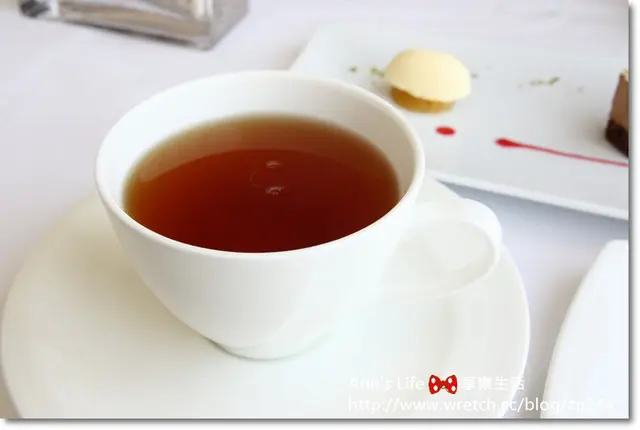 飯後來杯熱茶和咖啡,靜靜凝望46樓底下縮小的景物,這天台中的天氣還是很好,高樓望出去的景色清晰的一覽無遺,這景象很類似年中我們在遠企馬可波羅餐廳用餐的樣子,但頂餐廳不甚大的空間卻仍是多了一分愜意,我想那一定是因為除了美景之外服務人員專業熱誠的服務,以及從前菜到甜點都無一差錯和失誤的餐點,都讓原本就很好的氣氛好上加好吧!