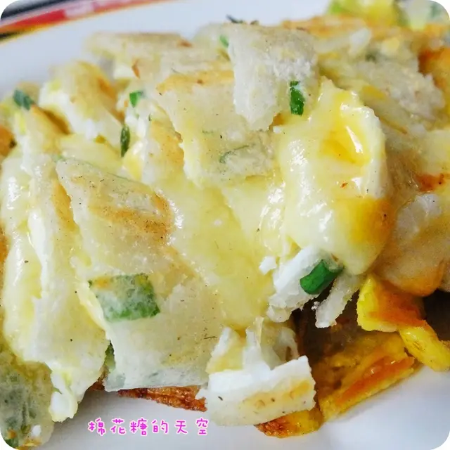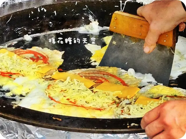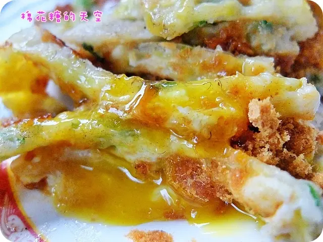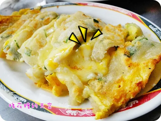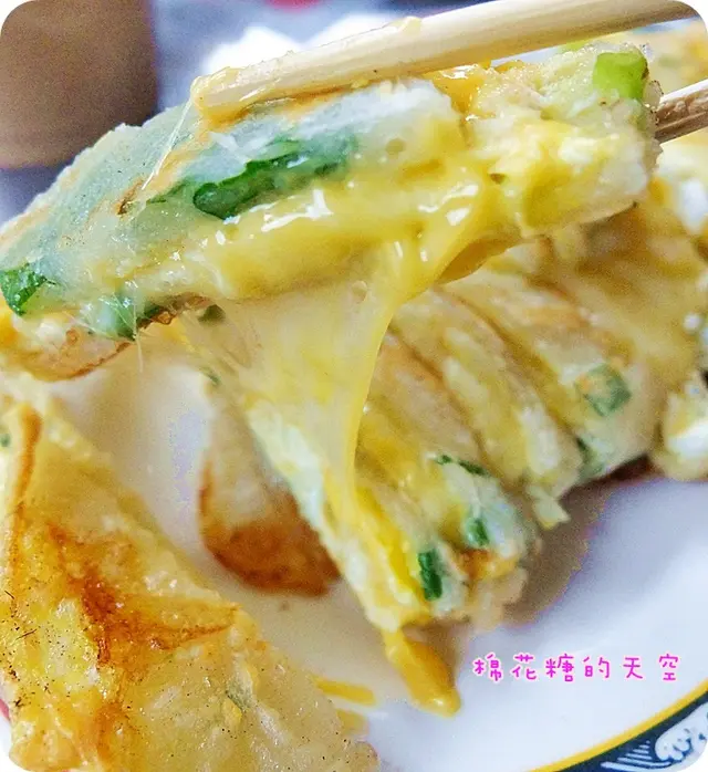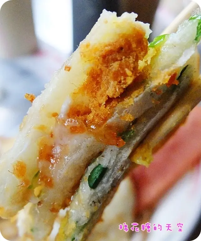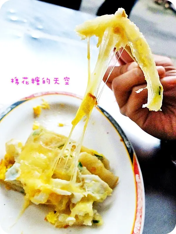 看你要拉多長就有多長~每一絲都牽動大家愛吃的心啊!(突然文青了起來……)而且這蛋餅的皮還煎到帶一點脆脆的口感,這就一定要在現場吃才吃得到這樣子的美味了,外帶悶住之後應該就會變軟~