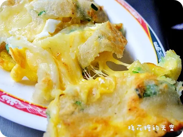 呼呼~厲害的起司蛋餅上桌了,裡頭濃濃的起司就這樣給他留下來!看起來真的是太邪惡了~