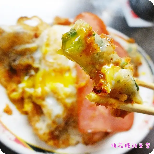 用筷子輕輕一戳~蛋黃就這樣流洩出來,吸睛程度一點都不輸牽絲的起司。